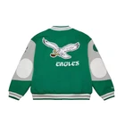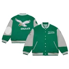 Philadelphia Eagles Mitchell & Ness Varsity Team Full-Snap Jacket – Kelly Green 100% Authentic Mitchell & Ness - Officially Licensed by the NFL (BEWARE, FAKES OF THIS JACKET ARE RAMPANT. IF THE PRICE IS TOO GOOD TO BE TRUE, IT IS.) Condition: Brand New with Tags If you have any other questions, please message us.
