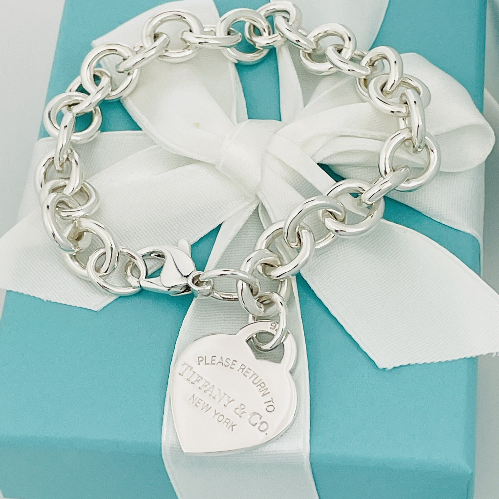 Guaranteed 100% Authentic Return To Tiffany & Co Heart Tag Sterling Silver Bracelet. Measures 7.5", will fit a wrist up to 6.5" around. 34 grams. Heart is 1" x .81" Pre-owned Tiffany box or pouch will be included, new Tiffany packaging may be available (see below). 🛍 More Tiffany Jewelry Explore our full collection: Copy and paste the below address to your browser 👉 https://www.ebay.com/str/thesilvertrove ✨ Where Our Pieces Come From We source Tiffany items from: • Estate sales • Antique shops • Auctions (local & online) & private sellers. • We're specialists in authenticating Tiffany and every piece is hand-verified for originality and quality. 🎁 Tiffany Boxes & Pouches • Not all listings include a box or pouch. • Need one? Ask in the "Message to Seller" box at checkout. • If available, we’ll include a gently used one for free. • New boxes/pouches are available in our store. 💎 Why Our Tiffany Looks So Good • All items are authenticated. • Fakes are destroyed. • Poor repairs are fixed or repurposed. • Some pieces are lengthened or restored using authentic Tiffany parts. 🚚 Upgraded Shipping • If you choose 1-Day or Priority, and your item is going to eBays authentication dept., eBay will not expedite shipping to your final address. • Extra shipping fees are non-refundable unless we misrepresented the item. Thank you for shopping with us!