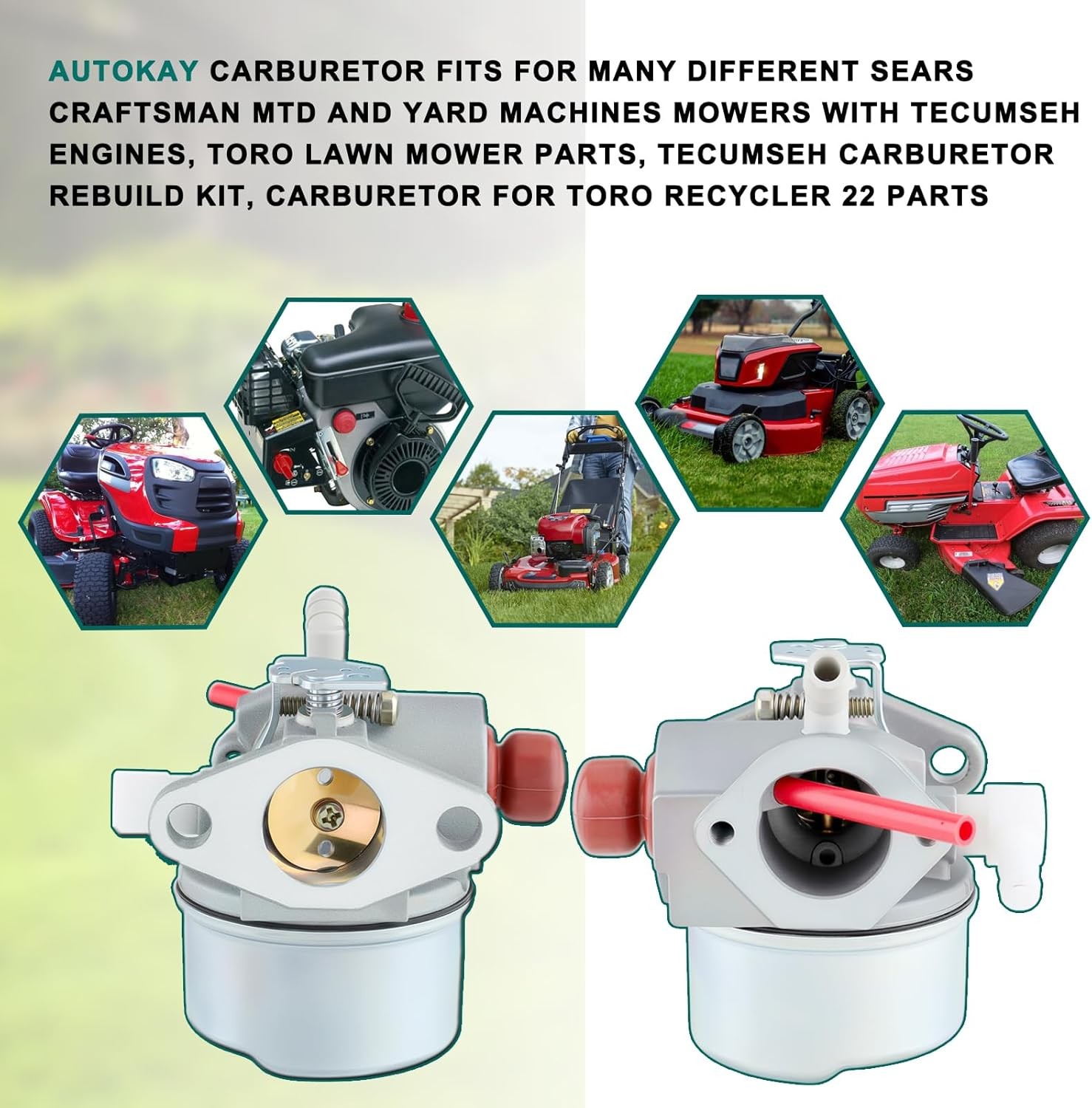 AUTOKAY71 640303 Carburetor for Tecumseh 4.5hp 5hp 5.5hp 6.0hp 6.5hp 6.75hp LEV100 LV195EA LV195XA Engine for Toro 20016 20017 20018 Recycler 917.38740 143.013802 Lawn Mower Description Used On Tecumseh LV195XA-362014E 4 Cycle Veritical Engine; LV195XA-362029E 4 Cycle Veritical EngineLV195XA-362044E 4 Cycle Veritical Engine; LV195XA-362045E 4 Cycle Veritical EngineLV195XA-362078E 4 Cycle Veritical Engine; LV195XA-362079E 4 Cycle Veritical EngineLV195XA-362084E 4 Cycle Veritical Engine; LV195XA-362086E 4 Cycle Veritical EngineLV195XA-362087E 4 Cycle Veritical Engine; LV195XA-362088E 4 Cycle Veritical EngineLV195XA-362089E 4 Cycle Veritical Engine; LV195XA-362090E 4 Cycle Veritical EngineLV195XA-362091E 4 Cycle Veritical Engine Fit for Toro Lawn Mower : 20001 (###-###)(2004) Lawn Mower 20003 (###-###)(2005) Lawn Mower20003 (###-###)(2006) Lawn Mower 20005 (###-###)(2005) Lawn Mower20005 (###-###)(2006) Lawn Mower 20007 (###-###)(2004) Lawn Mower20008 (###-###)(2003) Lawn Mower 20008 (###-###)(2004) Lawn Mower20009 (###-###)(2002) Lawn Mower 20009 (###-###)(2003) Lawn Mower20009 (###-###)(2004) Lawn Mower 20009 (###-###)(2005) Lawn Mower20009 (###-###)(2006) Lawn Mower 20009 (###-###)(2007) Lawn Mower20012 (###-###)(2002) Lawn Mower 20012 (###-###)(2002) Lawn Mower20012 (###-###)(2003) Lawn Mower 20012 (###-###)(2004) Lawn Mower20012 (###-###)(2005) Lawn Mower 20012 (###-###)(2006) Lawn Mower20013 (###-###)(2002) Lawn Mower 20013 (###-###)(2002) Lawn Mower Features: √640350 Carburetor Fits For Many Different Sears Craftsman Mtd And Yard Machines Mowers With Tecumseh Engines, Toro Lawn Mower Parts, Tecumseh Carburetor Rebuild Kit,Toro Recycler 22 Carburetor, Toro Carburetor, Toro Carburetor Rebuild Kit, Toro Recycler 22 Blade, Carburetor For Toro Recycler 22, Toro Recycler 22 Parts, Toro Lawn Mower Parts √640350 Carburetor Fit For Toro 20016 20017 20018 20012 20069 20070 20071 20071A 20072 20072A 20073 20073A 20074 20075 20074A 20075 20076 20076A 20094 20096 20098 20001 20003 20005 20007 20008 20009 20013 20014 20031 20051 22 Inch Recycler Walk Behind Lawn Mower √640350 Carburetor Replaces Lawn-Boy 10670C 10671 10673 10682 10683 10684 10684 10685 10686 10686C 10687 10780 10785 10995 10997 Lawn Mower, Replaces Rotary 13144, Carburetor Fits For Many Different Sears Craftsman Mtd And Yard Machines Mowers With 6 6.25 6.5 6.75 Hp Tecumseh Engines Product Details: Manufacturer: AUTOKAY Brand: AUTOKAY Item Weight: 15.2 ounces Package Dimensions: 5.83 x 4.33 x 3.62 inches Manufacturer Part Number: L809614 Brand: AUTOKAY Flange Type: Bolt On Recommended Uses For Product: Lawn Mower Manufacturer: AUTOKAY Handling We will ship all orders within 3 business day of payment. Delivery We Do Not Ship Outside of the Continental US. Return Policy All items qualify for returns within 30 days of receipt. Buyer is responsible for return shipping on any item that is not damaged. Feedback We take our reputation seriously, we buy and sell online, so we understand the value of trust. If you are unsatisfied with your order, please contact us and we will work with you to resolve it to your satisfaction.