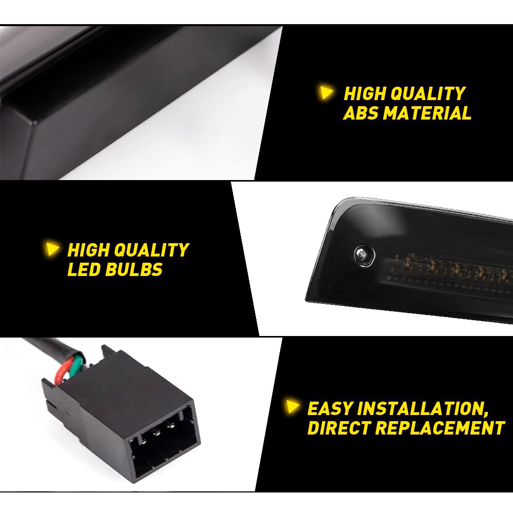 This LED brake light is a fantastic upgrade! The smoked housing looks sleek, and the bright red/white lighting is super clear for safety. Super easy to install—just plug and play. The waterproof design holds up great in rain or snow, and the build quality feels durable. Perfect fit for my Ram 1500, and the cargo light is super handy. Definitely worth it for the improved visibility and modern look!