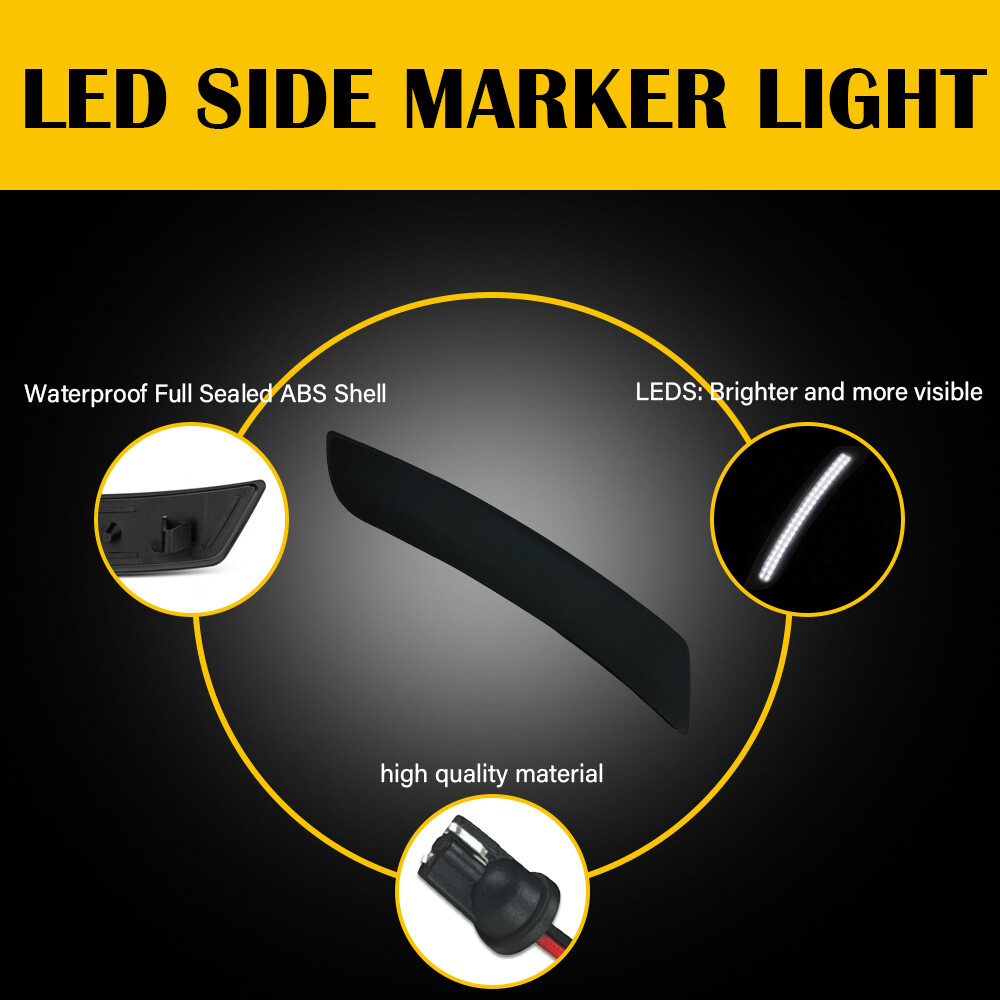 These LED side marker lights are a game-changer for my Camaro! The smoked lens gives it a sleek, aggressive look while the bright amber LEDs improve visibility and safety. Installation was a breeze—perfect fit just like OEM. The quality feels premium, and they make my ride stand out. Definitely worth the upgrade over the dull stock bulbs. Highly recommend!