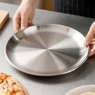 Our pizza pan for oven is made of high quality commercial-grade stainless steel, won't rust, not easy to deform, has a certain weight, the size of the size of the diameter of 13½-inch, the height of 0.8-inch, the surface is smooth, mirror design, smooth surface for non-sticky and easy release, unlike other aluminum pizza pans, our pizza pans weighs 0.88 pounds, won't warp under high temperature, it's a good choice for you to make delicious pizza at home! The pizza pan is made of pure stainless steel and does not contain any toxic substances or dubious coatings,During the baking process, it is a relief to make sure that no excess toxic substances seep into the meal or food and won't make a mess in your kitchen, great alternative to aluminum and coated pans, healthier for baking. The stainless steel pizza pan feature excellent heat conductivity and cooked crust evenly. Makes it easy to bake the perfect pizza crust with consistent texture right at home. Featuring a thoughtful design with a gently sloped edge to ensure fillings stay within the safe confines of the pizza pan for oven, the 13½ inch pizza pan combines form and function, it was pretty easy to slide the pizza out to slice it after cooking. The thick rim adds structural integrity, while smooth sides provide a secure, comfortable grip, free of sharp hazards, give you a comfortable holding so that you can safely transfer the round pizza pan in and out of the oven. This pizza steel makes culinary exploration in the home kitchen a pleasure! The pizza baking pan not only hold generous pizzas such as fruit custard dessert pizza, cauliflower crust pizza, big classic pie brimming with toppings, but also serve for roasting meat, baking cakes, cooking chicken and veggies, bake Quinoa Bread for pita sandwiches, baking those ready made frozen cookies, reheating leftovers, presenting a cornucopia of fruits, snacks and use these stainless steel plates under pie pans to catch drips. You can also make these pizza plates come in handy for special occasions such as family dinners, friends' gathering, graduation parties, birthdays, national pizza day, housewarming to make delicious pizzas for many people and to serve delicious desserts or snacks! The large pizza pan could be run in the oven and dishwasher, maintenance is blissfully straightforward. Resistant to abrasion and staining, the round cookie sheet is a breeze to clean. After use, a simple wipe under warm soapy water suffices, but the true convenience lies in their dishwasher-safe nature, seamlessly integrating into the rhythm of our busy life. We recommend storing it dry with a soft and dry rag after washing it, so that this stainless steel pizza pan can give you baking pleasure for longer! High-quality and Healthy materials: The size of the pizza pan is 13½-inch diameter and 0.8-inch high, weighs 0.88 pounds, and built of decent gauge stainless steel and have a good finish on them, free from any toxic substances or dubious coatings. The stainless steel pizza pan won't warp in high temperatures, is durable and has some weight to it without being flimsy. You can feel relieved that no harmful chemicals will seep into your food during the baking process, ensuring that the health and safety of you and your family is a top priority Durability and Sloped design: The pizza pan for oven resist deformation with the tenacity of well-forged steel, conducting heat evenly and efficiently, can cooked crust evenly. Not as thin as aluminum pizza pan, the pizza steel is not easy to deform, not easy to scratch, will not rust and has a long service life. The gently sloping edges allow toppings to completely cover the crust without spilling, and the smooth edges have no rough or sharp spots, giving you a comfortable grip so you can safely move the round pizza pan in and out of the oven Versatility and Utility: The pizza tray is suitable for many occasions to make delicious big pies of pizzas for multiple people, such as birthday party, new year's, graduation, thanksgiving, housewarming, family gatherings, and daily baking. Not only can you making delicious and hearty pizzas for your family or friends, such as fruit custard dessert pizza, cauliflower crust pizza, but you can also use the pizza pan to grill meat, cook chicken and veggies, bake cookies, quinoa Bread for pita sandwiches, reheat leftovers, and serve fruit or snack Oven and Dishwasher Safe: The pizza serving tray easily accommodates your oven and doesn't leave any stains or signs of wear. This large pizza pans did well for cooking pizza on them and oven plate was pretty easy to slide the pizza out to slice it after cooking. Since pizza plates are made from stainless steel, you don't need to worry about damaging them when cutting your pizza. You also don't have to worry about cleaning it after use either! The stainless steel plates is easy to clean with hand, Dishwasher safe to save your cleaning labor Brushed Finish and Maintenance: Featuring a smooth brushed finish that is hard-wearing and stain-resistant, with a smooth, non-stick surface that is easy to remove from the pizza steel, the pizza pans 13½ inch is a great choice for pizza lovers, avid bakers, or the occasional pie enthusiast. The pizza pan not only provides you with an excellent baking experience, but also gives you peace of mind with safe, durable and easy to clean cookware. We recommend drying it with a soft cloth after cleaning and storing it in a dry place Tip: To extend the product's service life and make cleaning easier, we recommend that you safely use the pizza pan within a temperature range of 300°C (572°F). After use, allow it to cool to room temperature before cleaning to avoid deformation caused by sudden cooling.