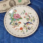 AYNSLEY Pembroke (Gold Trim) Cup & Saucer DIMENSIONS: Saucer: 5 1/2" diam. Cup: 2 1/2" tall x 4 1/4" x 3 1/4". Total weight: 10 ounces. DESCRIPTION: 1 vintage cup and saucer. By AYNSLEY. Pattern: Pembroke. Bone china. Multicolored birds and flowers on white with gold rim accent. Back stamp: green crown mark "Aynsley - Est. 1775 - Made in England - Fine English Bone China"; "Pembroke - Reproduction of an Eighteenth Century Aynsley design". 1985-2015. CONDITION: Excellent gently used condition. No damage and no significant wear. No restoration. Condition is consistent with seldom gentle use and careful handling. Most of these pieces appear unused or barely used. No nicks, fleabites, chips, cracks. No significant scratches or rubs. No crazing. No residues, scale, stains or discolorations. No wear to the floral decoration. Clean, bright, shiny. On very close inspection in glancing light you may detect some very light, typical use-related surface wear which may include: scattered small utensil scratches to the glaze; scattered minute wear to the gold rim accent. Nothing at all significant or conspicuous.