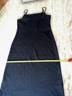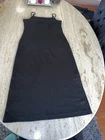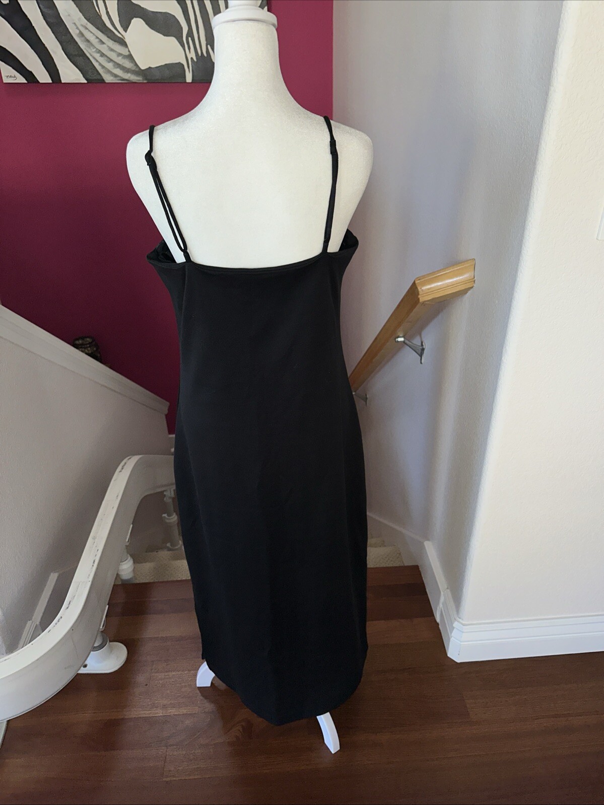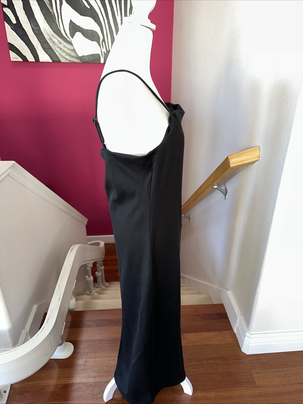 AYR Black Pima Cotton Midi Dress Spaghetti Straps Rt Side Slit Sq Front- Size L