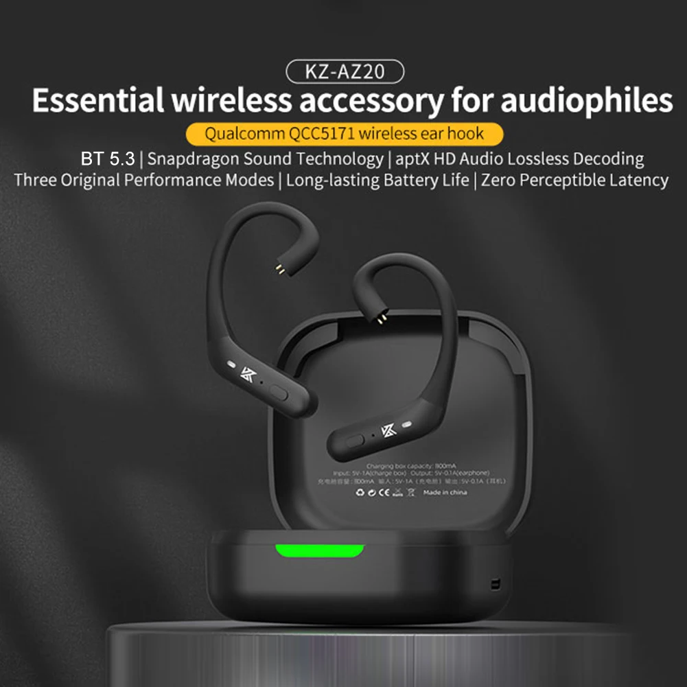 Wireless Upgrade Ear Hook Touch Control Earbuds Snapdragon Sound Technology Bluetooth-compatible 5.3 Aptx HD Audio Lightweight for Sports Music Feature: 1. True-to-Life Audio Quality: Experience pure and delightful sound with the AZ20 wireless upgrade ear hook, delivering an authentic and immersive listening experience. 2. Powerhouse Performance: The AZ20 wireless upgrade ear hook is equipped with the powerful Qualcomm 5171 Bluetooth-Compatible chip, providing reliable and stable connectivity for seamless communication. 3. Superior Sound Quality: The AZ20 sets a new standard in all aspects, delivering exceptional sound quality, crystal-clear calls, outstanding performance, and optimal power efficiency. 4. Upgrade Your Wired Earphones to Wireless: Transform your wired earphones into wireless Bluetooth-Compatible headphones instantly by connecting them to the AZ20 wireless upgrade ear hook Bluetooth-Compatible ear hook, giving you the freedom to enjoy music wirelessly. 5. Skin-Friendly Pre-Molded Ear Hook: Designed based on years of research on the human ear structure, the AZ20 wireless upgrade ear hook features a comfortable and ergonomic silicone ear hook. It fits snugly and securely, providing a lightweight and pressure-free wearing experience, ensuring stability and preventing accidental fall-off. KZ AZ20: Specification: Origin: Mainland China Style: In-ear Communication: Wireless Wireless Type:Bluetooth-Compatible Vocalism Principle: Dynamic Control Button: Yes Volume Control: Yes Frequency Response Range: @@Hz Category: Earphones & Headphones Material: ABS Colour: Black Cavity material: plastic + metal Bluetooth-Compatible chip: Qualcomm Bluetooth-Compatible: 5.3 Transmission protocol: APTX-HD/APTX/AAC/SBC Transmission distance: 15-20m Battery life: 6H Charging interface: TYPE-C Game mode: support Full power mode: supported Earhook battery capacity: 35mA Charging compartment battery capacity: 800mA Earhook weight: 4.5g (single) Charging compartment weight: 85g Weight: 185g±5g Packing size: 95*82*38mm Note: This product is only suitable forBluetooth-Compatible upgrade ear hooks, without headphones! Applicable to model C: Castor/Krila/AS24/EDXS/PR2/D-Fi/ZVX/ZSN/ZSN PRO/ZS10 PRO/AS16/AS12/ZSX/ZSN PRO-X/ZAX/ASF/ASX/DQ6/ AST/ZAS, etc. KZ XZ10: Specification: Model: Compatible with KZ XZ10 Bluetooth-Compatible chip: Qualcomm Bluetooth-Compatible : 5.3 Transmission protocol: APTX/AAC/SBC Transmission distance: 15-20m Battery life: 12H Charging interface: TYPE-C Game mode: support Full power mode: supported Earhook battery capacity: 50mA Charging compartment battery capacity: 800mA Note: This product is only a Bluetooth-Compatible upgraded ear hook, without headphones! Applicable to model C: Compatible with ZSN/ZSN PRO/ZS10 PRO/AS16/AS12/ZSX/ZSN PRO-X/ZAX/ASF/ASX/ DQ 6/AST/ZAS/EDX PRO/ZEX/ZEX PRO/EDS/ DQ 6S/ ZES/EDA/EDX ultra etc. KZ XZ10: Specification: Bluetooth-compatible chip: high-definition Bluetooth-compatible chip Bluetooth-compatible: 5.2 Transmission protocol: AAC/SBC Transmission distance: 15-20m Endurance: 6H Charging interface: TYPE-C Game mode: supported Ear hook battery capacity: 50mA Charging case battery capacity: 800mA Weight: 186g ± 5g Packaging size: about 118 * 102 * 42mm/4.64 * 4.01 * 1.65inch Style A applicable models: ZST/ZSR/ED12/ ES 3/ ES 4/ZS10/AS06/AS10/BA10/ZST-X/EDX, etc. Style B applicable models: ZSN/ZSN PRO/ZS10 PRO/AS16/AS12/ZSX/ZSN PRO-X/ZAX/ASF/ASX/ DQ 6/AST/ZAS, etc. Note: Due to the different monitor and light effect, the actual color of the item might be slightly different from the color showed on the pictures. Thank you! Please allow 1-2cm measuring deviation due to manual measurement. 2 X Wireless Upgrade Ear Hook 1 X Charging Case 1 X Charging Cable 1 X Instruction Manual