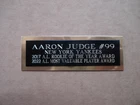 THIS AUCTION IS FOR THE NAMEPLATE ONLY !!!!!!! BOBBY'S HANG-UPS PREMIUM QUALITY ACRYLIC DISPLAY CASES AND CUSTOM ENGRAVED NAMEPLATES SINCE 1999 THESE NAMEPLATES ARE GREAT FOR DISPLAY CASES, FRAMED AND MATTED PHOTOS AND JERSEYS, SHADOW BOXES, PLAQUES, ETC. WE SPECIALIZE IN CUSTOM ORDERS OF ALL NAMEPLATES. WHETHER IT'S FOOTBALL, BASEBALL, BASKETBALL, HOCKEY, GOLF, BOXING OR ANY PERSONALIZED NAMEPLATE THAT YOU MAY NEED. WE CAN MAKE JUST ABOUT ANY NAMEPLATE THAT YOU ARE LOOKING FOR. PLEASE LIMIT THE AMOUNT OF TEXT TO 3 LINES ON THIS SIZE NAMEPLATE. OUR NAMEPLATES ARE TRIPLE ENGRAVED TO GUARANTEE CRISP, READABLE TEXT. NAMEPLATES ARE HAND POLISHED BEFORE SHIPPED TO MAKE SURE THE ENGRAVING REALLY STANDS OUT. ALL NAMEPLATES HAVE HIGH QUALITY DOUBLE SIDED TAPE TO ENSURE IT WILL STAY IN PLACE. CLICK HERE AND GO VISIT OUR EBAY STORE FOR MORE GREAT ACRYLIC DISPLAY CASES AND ENGRAVED NAMEPLATES !!!! PLEASE CHECK OUT OUR EBAY STORE, AND CHECK OUT ALL OF OUR ACRYLIC DISPLAY CASES AND NAMEPLATES. IF YOU DON'T SEE THE NAMEPLATE YOU ARE LOOKING FOR OR IF YOU ARE LOOKING TO PLACE A CUSTOM ORDER, PLEASE FEEL FREE TO EMAIL US AND WE WILL GET WORKING ON YOUR ORDER RIGHT AWAY. THANK YOU! THIS PURCHASE IS FOR AN AARON JUDGE NAMEPLATE. IT IS BLACK ON BRASS BACKED ON POLISHED GOLD PLATING. THE NAMEPLATE MEASURES APPROX 1" X 3" IN TOTAL WITH ENGRAVED TEXT THAT READS: AARON JUDGE #99 NEW YORK YANKEES 2017 A.L. ROOKIE OF THE YEAR 2022 A.L. MOST VALUABLE PLAYER AWARD IF YOU ARE PURCHASING DIFFERENT TEAM OR PLAYER NAMEPLATES, AND DIFFERENT SIZES AT THE SAME TIME, PLEASE USE THE SHOPPING CART FEATURE AND PLEASE REQUEST A TOTAL BEFORE MAKING PAYMENT TO ENSURE YOU GET THE PROPER COMBINED SHIPPING DISCOUNT. Be sure to add me to your favorites list ! DON'T FORGE T TO LIKE, FOLLOW AND SHARE US ON FACEBOOK TO GET NEWS ON ALL OF OUR NEW RELEASES https://www.facebook.com/bobbyshangups