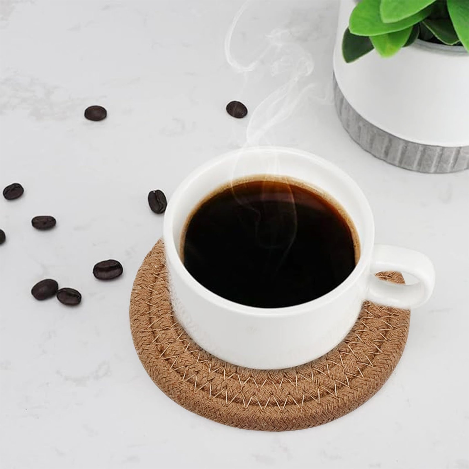 Is Dishwasher Safe: Yes Part Number: Fc1003C-1Se-Zong-6 UPC: Does not apply Item Shape: Round MPN: Does not apply Country of Origin: China Type: Does not apply Unit Count: 6.0 Material: Rope Woven Weight: 0.33 Pounds Package Dimensions LxWxH: 4.53x4.33x0.71 Inches Brand: Does not apply Model: Does not apply gtin13: Does not apply Care Instructions: Machine Wash Size: 6Pcs Color: Brown