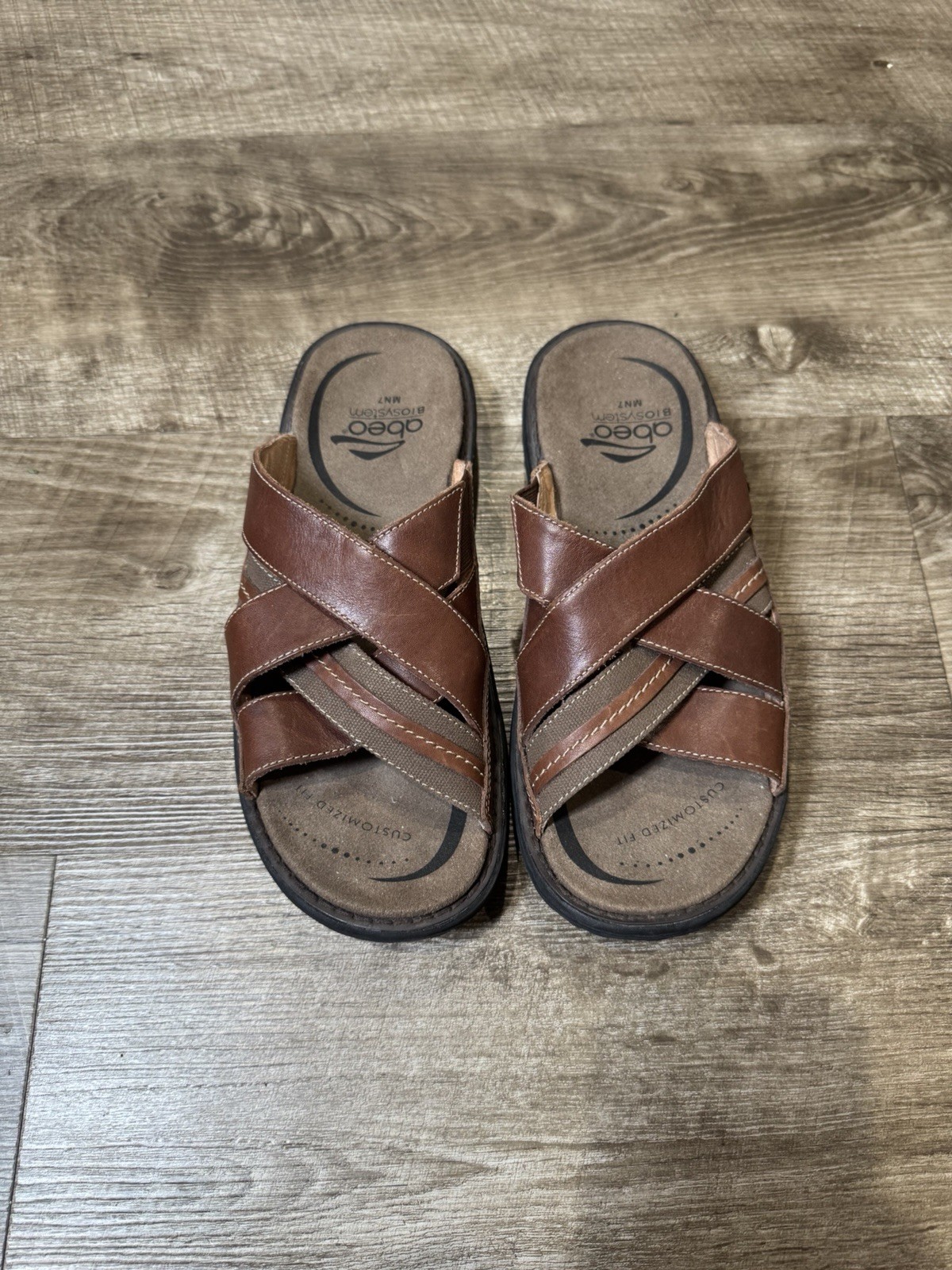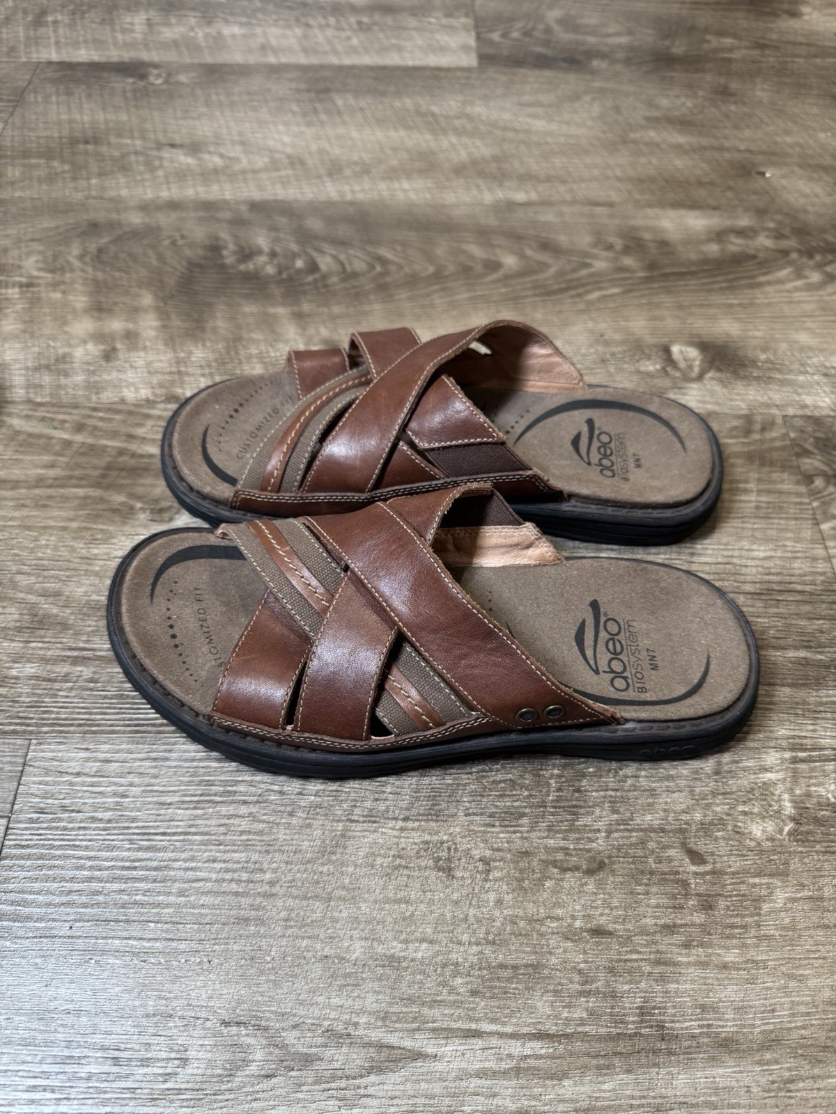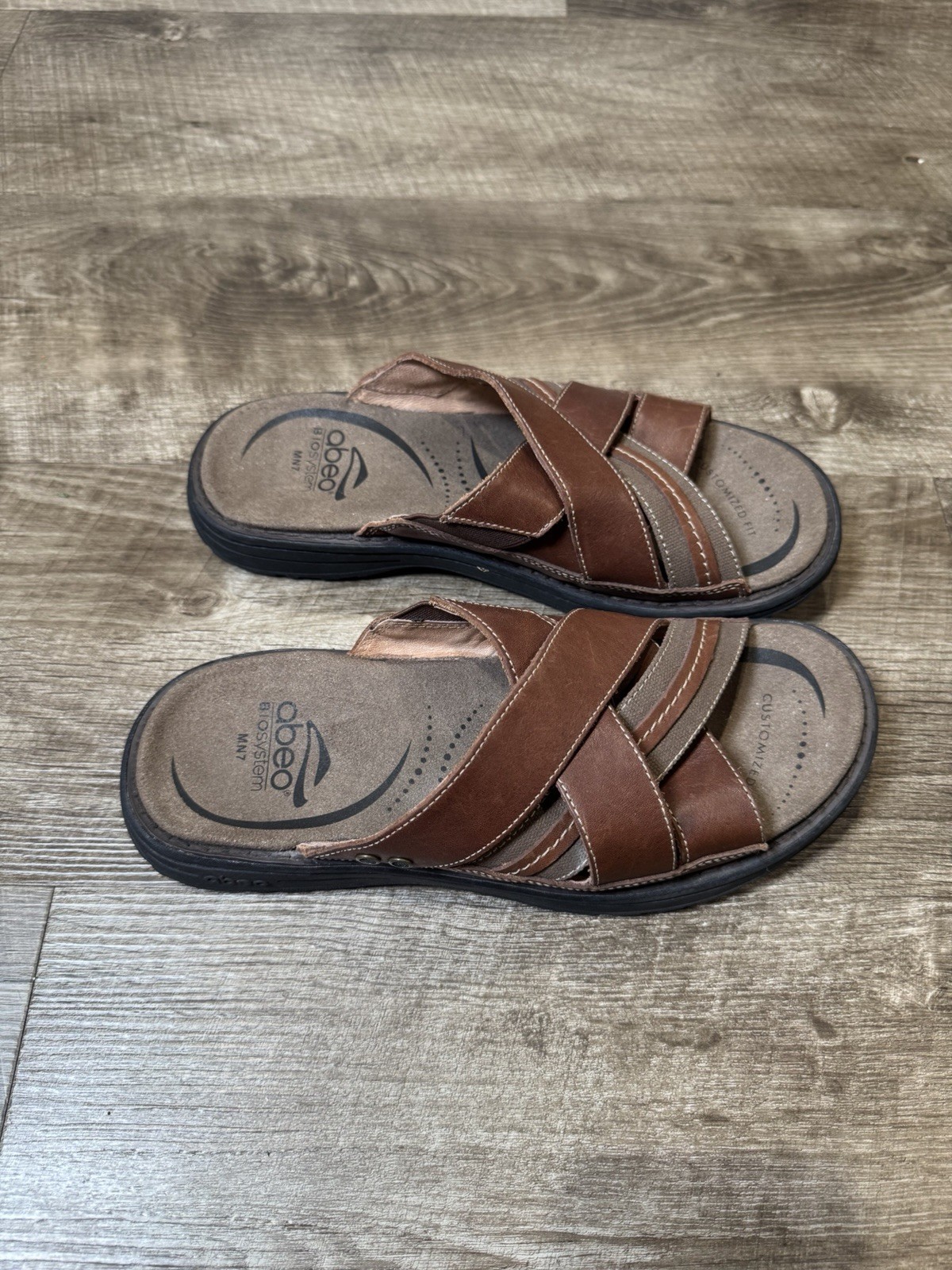 Abeo Brant Cross Brown Leather Sandals Mens Size 7 BM048. Condition is Pre-owned - Excellent. Shipped with USPS Ground Advantage.