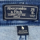 The product is a pair of women's Abercrombie & Fitch Harper Low Rise Ankle jeans in size 0/25 with a mid-rise fit. These denim jeans feature a zip and button closure, a 5-pocket design, and a slim fit with a raw hem accent. The jeans come in a classic blue color with distressed detailing and stretch material for added comfort. Perfect for all seasons, these jeans are machine washable and made of a blend of polyester, cotton, and elastane. With a timeless appeal and versatile style, these Abercrombie & Fitch jeans are a staple in any woman's wardrobe. Very good preowned condition with normal preowned wear. Please see all photos; specifically for measurements. ******************************************************************************************************************************************************* FOR CLOTHING SPECIFICALLY, BE SURE TO REVIEW PHOTOS FOR ACTUAL MEASUREMENTS OF THE WAIST, RISE, INSEAM, LEG OPENING, SHIRT WIDTH AND LENGTH, ETC... WASHED CLOTHING TENDS TO SHRINK SLIGHTLY AND THEREFORE MAY DIFFER SLIGHTLY FROM WHAT THE TAG/SIZE SAYS THAT IT IS. ******************************************************************************************************************************************************* The size in the title is the size on the tag of the garment. See photos for measurements of actual measurements as they may differ. ALWAYS CHECK THE MEASUREMENTS IN THE PHOTOS. This will remove any questions on measurements as well as always cover the possibility of human error in the listing(s) in the case of a typo or oversight. All clothing and shoes have been washed/cleaned, and are cleaned and stored in a smoke free environment. However, please keep in mind that these are preowned items and there is always a possibility of there being preowned dirt, dust, or stray hairs present. I do my best to clean these items with hair collecting products in the dryer after being washed, and by hand with shoes. If shoe trees appear in the photos, they are for photography purposes only to illustrate how the shoes look filled out, and are not included. I accept or negotiate reasonable offers. If you like what you see here, please visit my eBay store for many, many ore items similar to this one. I hope to see you there. For your convenience you can simply copy & paste the link below to go directly to my store. https://www.ebay.com/str/projectellsworth Have an amazing day. Thank you. FOR CLOTHING SPECIFICALLY, BE SURE TO REVIEW PHOTOS FOR ACTUAL MEASUREMENTS OF THE WAIST, RISE, INSEAM, LEG OPENING, SHIRT WIDTH AND LENGTH, ETC... WASHED CLOTHING TENDS TO SHRINK SLIGHTLY AND THEREFORE MAY DIFFER SLIGHTLY FROM WHAT THE TAG/SIZE SAYS THAT IT IS. *******************************************************************************************************************************************************