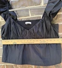 The Abercrombie & Fitch Women's Black Ruffle Crop Tank Top in Size Large is a stylish and versatile blouse for casual occasions. With a boat neck and short cap sleeves, this top features a solid black color with ruffle accents, giving it a trendy and chic look. Made of lightweight polyester material, this top offers comfort and is suitable for all seasons, making it a must-have piece for any wardrobe. Perfect for a bohemian, city, or classic themed outfit, this crop tank top from a reputable brand like Abercrombie & Fitch is sure to become a go-to piece for any woman's wardrobe.