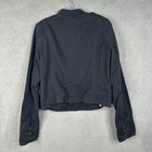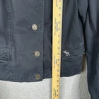 The Abercrombie & Fitch Women's Jacket in Military Navy Blue is a stylish and versatile piece perfect for travel, casual outings, or workwear. Made from durable cotton canvas, this vintage Y2K jacket features a full zip closure, button accents, and a biker style design. The solid navy blue color and army theme add a fashionable touch to this short-length jacket, making it a must-have for the fall, winter, and spring seasons. With its regular fit and size L, this jacket provides both comfort and style for any woman's wardrobe.