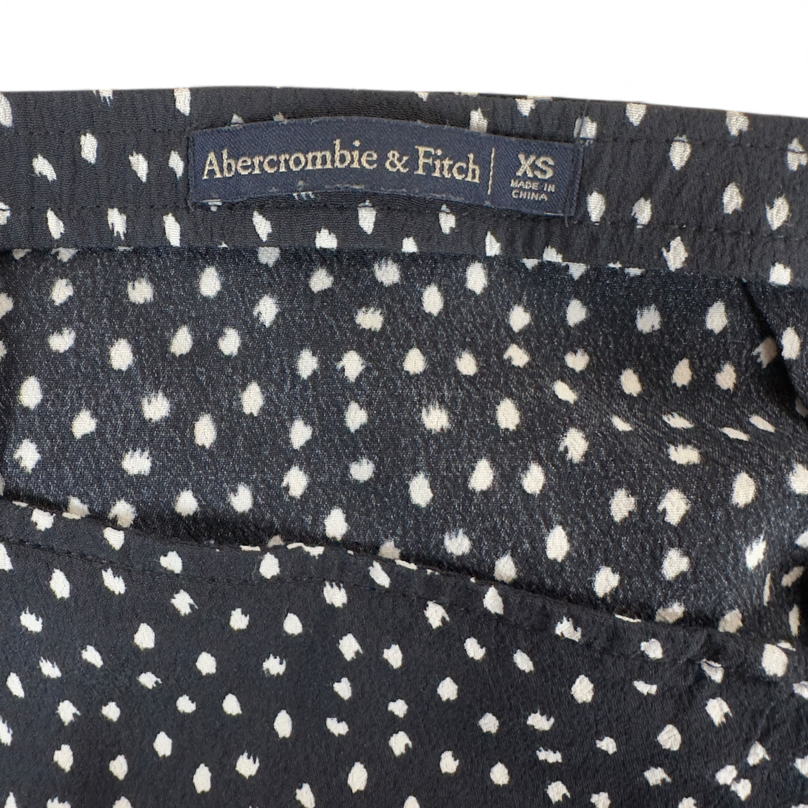 Chic, feminine, and beautifully draped—this Abercrombie & Fitch ruched midi skirt features a modern black-and-white micro-dot print with a flattering asymmetric front and subtle front slit. The lightweight woven fabric moves beautifully and adds an elevated elegance to everyday outfits. This is an effortless piece you can dress up with a blouse and heels or keep weekend-casual with a simple knit tank and sandals. A flattering silhouette that feels timeless yet current. Details & Features Brand: Abercrombie & Fitch Size: XS. Measurements provided in photos . Color: Navy with white micro dot print Style: Ruched asymmetric front, soft drape, front slit Length: Midi Closure: Zipper Condition: Good pre-owned – no major flaws noted Why You'll Love It This Abercrombie & Fitch midi skirt has that effortless, feminine silhouette everyone is searching for right now—soft drape and a subtle front slit that gives movement without feeling revealing. The black-and-white micro-dot print feels timeless and elegant, yet modern enough to dress up or down effortlessly. It’s the perfect wearable skirt for work, dinner, date nights, weekend brunch, or travel, and pairs beautifully with tops, knits, sandals, or heels. Classic, versatile, feminine—and incredibly flattering.