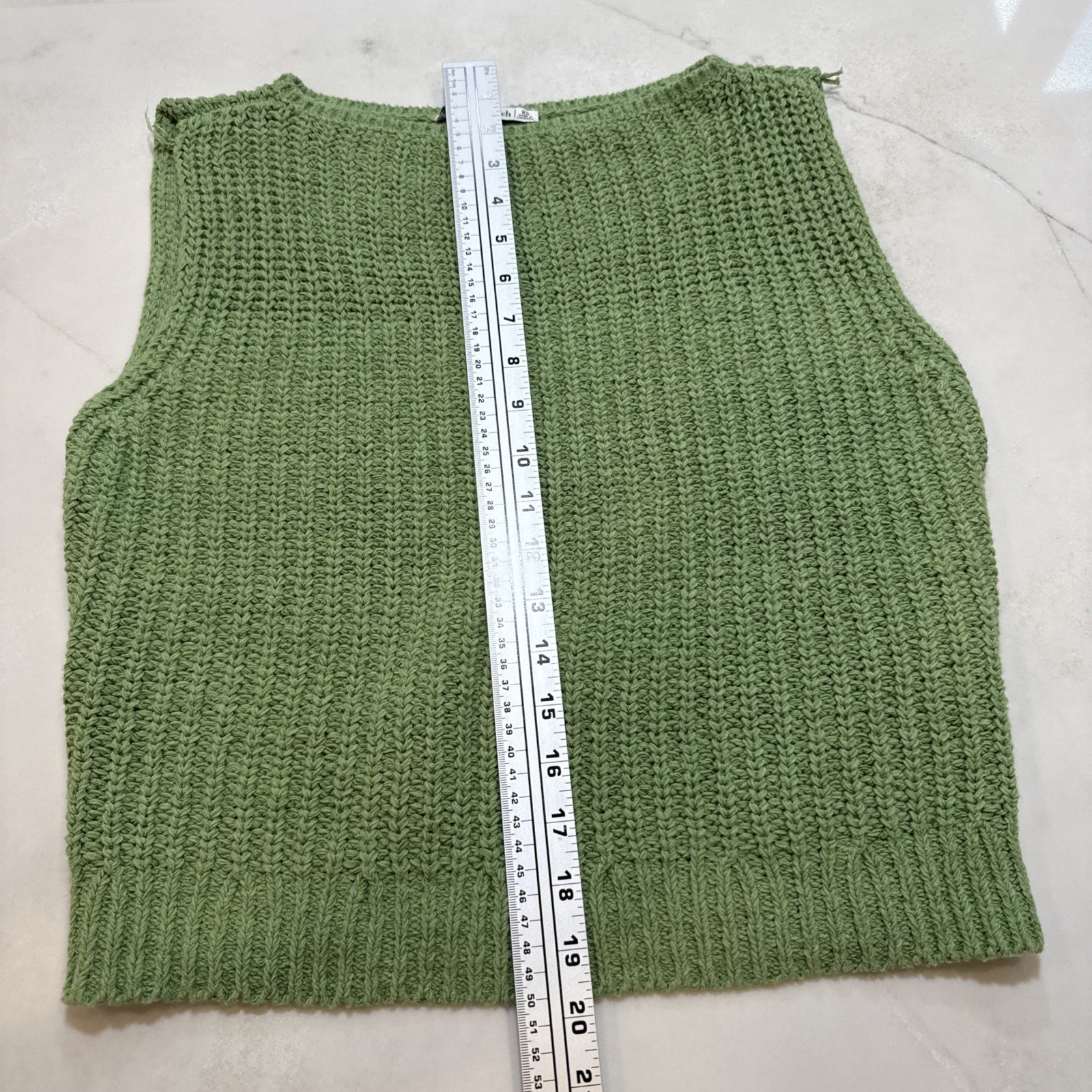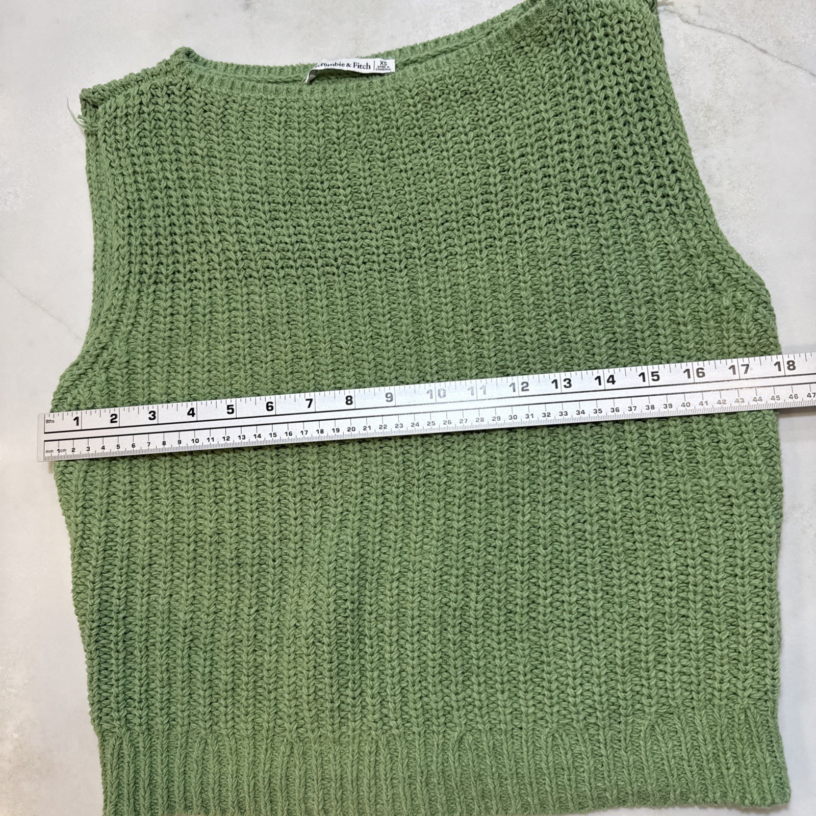 Abercrombie & Fitch women’s chunky knit sweater vest in a soft sage green. Sleeveless design with a ribbed hem and textured knit—perfect for layering over tees and blouses, styling with denim, or wearing alone in warmer seasons. Approximate flat lay measurements are in item photographs. Condition: Excellent pre-owned condition. No stains, holes, or stretching. Clean and ready to wear. Ships fast from a smoke-free home! Color may appear slightly different in lighting or on screens—please refer to all images. 30-day returns accepted. Item must be returned in the condition it was sent. Approximate flat lay measurements are in item photographs.