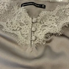 Abercrombie & Fitch Womens Y2K Satin Cami Tank Sz M Pewter Eyelash Lace Coquette. Please see photos for measurements and condition. In excellent pre-owned condition-no rips, tears or holes. Feel free to reach out with any questions. This is a previously owned and used item. It may have signs of wear and previous use. Features: • Style Profile: Y2K, 90's, Sexy, Coquette, Bella, Vampy, Fairy • Babydoll, Eyelash Lace, V-Neck, 3 Button Detail, Side Slits • Machine Wash • Chest: 34 in • Waist: 38 in • Length: 22 in Measurements: - Previous washings may change the sizing written on the tag. - Please refer to the photos above for all measurements. - Please compare our measurements to that of one of your favorite garments. - Please note, item measurements are approximate. - Colors may differ slightly in shade from photos to actual item due variances caused by photography lighting and monitors. All items are bagged and sealed after being photographed, then stored in a smoke free environment to ensure the item is exactly the same as when photographed. We always carefully package and ship ASAP. Feel free to contact us with any questions. All items are washed per eBay standards and policies. We greatly appreciate your business! Please remember to leave positive feedback if you are happy with your purchase! Thanks for looking!