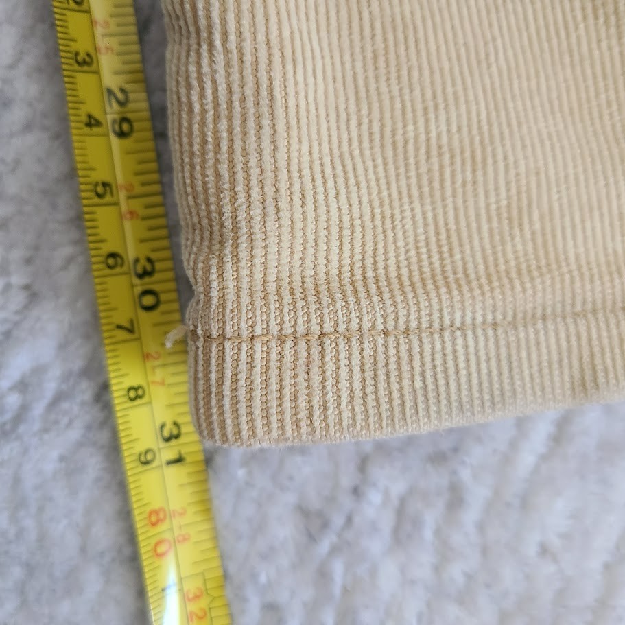 Classic low-rise corduroy flares in a warm tan shade with a true early 2000s silhouette. Soft stretch cord hugs comfortably through the hips with a gentle bootcut flare. Size 4 (approx. 27” waist, 32” inseam). 59% cotton / 39% polyester / 2% spandex. Slight fading and subtle color variation along the hems from normal wear — still overall in great vintage condition. Perfect for Y2K, coquette, or 90s revival looks.