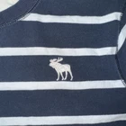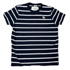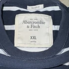 This is an Abercrombie & Fitch T-Shirt for men in size XXL, featuring a blue and white striped pattern with a round neck and short sleeves. Made of cotton, it has an embroidered logo detail. The shirt is machine washable and has a muscle fit, suitable for all seasons.
