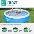 Kids and adults of all ages can enjoy swimming and splashing in Fast Set Above Ground Pool; It's the ultimate pool for backyard convenience with minimal setup A durable, yet lightweight PVC material provides structural integrity to your pool. It's tear-resistant and won't fade over time to sun exposure; Use this pool summer after summer Fast Set Pool is simple to set up and only takes about an hour to fill; Set on flat surface, inflate top ring with an air pump (not included), and fill the base of the pool with water This pool set includes a model 58511E 330-gallon filter pump and filter cartridge to keep your pool clean all summer long; This pool's water capacity is 1,004 gallons Disclaimer: Please review your HOA rules and restrictions before purchasing this product. Not all housing agencies permit private above-ground pools The 10ft Fast Set Pool Set is a great option for those with small backyard spaces. Because it's so quick and simple to set up and take down it makes an incredibly practical pool. You could either leave it up all season or pack it away after every use! All that you need to set up the above ground swimming pool is a flat, solid surface and an air pump (not included). Inflate the upper ring, fill the base with water and you are ready to go. This pool comes with a 330 gal filter pump to clean its water and maintain a healthy swimming environment. The pool also has a flow control drain valve, which can be attached to a hose to quickly fill or drain it. Bestway is committed to making innovative, quality products for people from all walks of life. Our extensive product offerings range from above ground swimming pools to inflatable air beds, from professional boats to the exciting toys and leisure products.