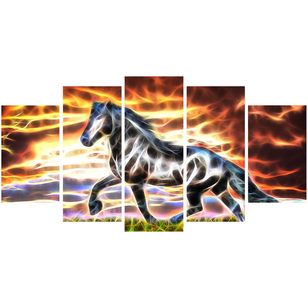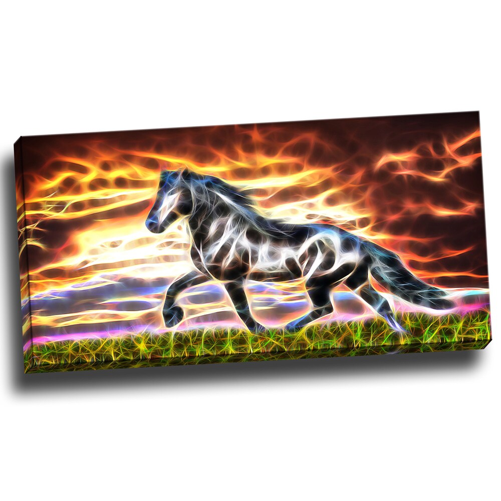 Available in single and multi-panel canvas, this animal print design on canvas is printed in high-quality fade-resistant ink on premium quality cotton canvas. This abstract abstract horse design is sure to be the centerpiece of any room it is placed in. The graphic canvas print is gallery-wrapped around solid wood subframes and carefully packaged ready to hang on the wall. Superior printing technology allows for a crisp, deep canvas print, which is never pixelated.Artist: N/AAbstract Horse - Animal Art Canvas - Multiple SizesProduct type: Gallery wrapped canvasStyle: ContemporaryFormat: HorizontalSize: OversizeSubject: AnimalsSmall option image dimensions: 16 inches high x 32 inches wide x 1 inch deep5-piece option image dimensions: 32 inches high x 60 inches wide Free Shipping Over $49.99* Details Abstract Horse Animal Art Canvas (Multiple Sizes) Product Description: Available in single and multi-panel canvas, this animal print design on canvas is printed in high-quality fade-resistant ink on premium quality cotton canvas. This abstract abstract horse design is sure to be the centerpiece of any room it is placed in. The graphic canvas print is gallery-wrapped around solid wood subframes and carefully packaged ready to hang on the wall. Superior printing technology allows for a crisp, deep canvas print, which is never pixelated. ArtistN/A Abstract Horse - Animal Art Canvas - Multiple Sizes Product typeGallery wrapped canvas StyleContemporary FormatHorizontal SizeOversize SubjectAnimals Small option image dimensions16 inches high x 32 inches wide x 1 inch deep 5-piece option image dimensions32 inches high x 60 inches wide