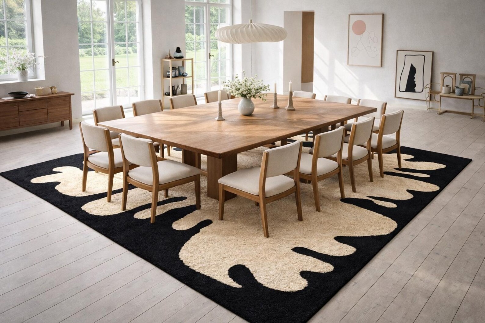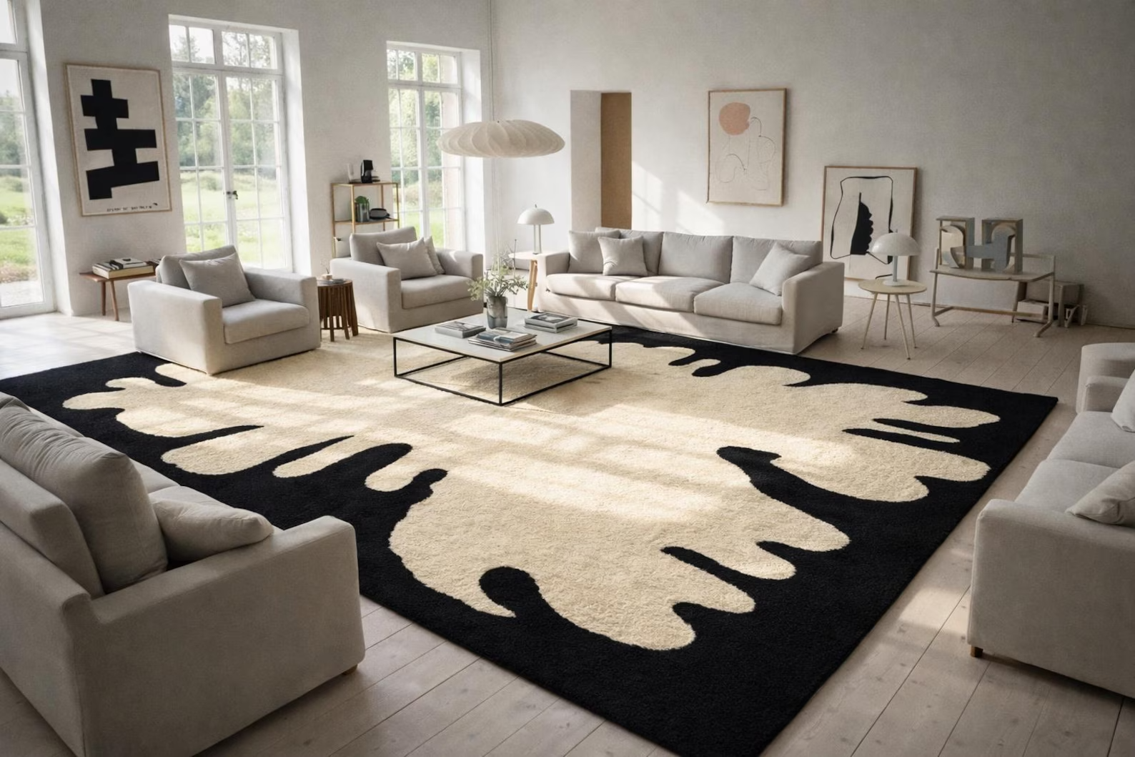 Modern Black White Abstract Wave Hand Tufted Area Rug for Minimal Living Room