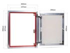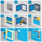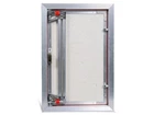 Aluminum hatches with a depth of 45 (series “ATP”) and 55 mm (series “ETP”) depending on the size. They have a profiled silicone seal around the perimeter of the frame, which provides reliable dust and moisture protection of the space behind the hatch. The door position can be adjusted in three directions: horizontally, vertically and tilted. Equipped with a powerful magnetic push lock, which ensures stable opening of the hatch without jamming, even if the door is lined with very heavy material. Advantages of the design: Made of aluminum profile. The hatch is opened by pressing the hatch door on the hinge side. The position of the door is adjusted in three directions: horizontal, vertical and angle of inclination. The door can be opened 180 degrees by means of a two-link hinge, which allows the hatch door to be opened frontally. The hatch has a profiled silicone seal around the frame, which provides reliable dust and moisture protection of the space behind the hatch. Technical advice: The hatch is mounted in a pre-prepared aperture of a metal frame or other material. Along the contour of the hatch frame, 12.5 mm deep grooves are arranged on the front side of the hatch for fixing the plasterboard wall to the hatch frame. At least 60% of the tile area should be glued to the hatch door. On the side of the hinge, adhesive tiles on the door can protrude from 5 to 50 mm, and on the other sides from 5 to 75 mm. Characteristics of a hidden hatch for ATP 40x50: Hatch location and type: Wall-mounted, hinged Hatch trim options: Ceramic tiles, mosaics, artificial and natural stone and other finishing materials Opening method: By pressing, with the CombiTOUCH® magnetic push lock Hatch opening angle: 180° Hatch frame size Width x height x depth: 400 mm х 500 mm х 45 mm Size of the open hatch opening Width x height: 337 mm х 437 mm Door size Width x Height: 350 mm х 450 mm Maximum door load: 10 kg Adjusting the door position: Vertically, horizontally, according to the angle of the door. Hatch material: Aluminum alloy, plasterboard (Knauf) Total hatch weight: 4.6 kg Equipment: Installation instructions, 2.5 and 5 mm L-shaped hex keys, vacuum suction cup