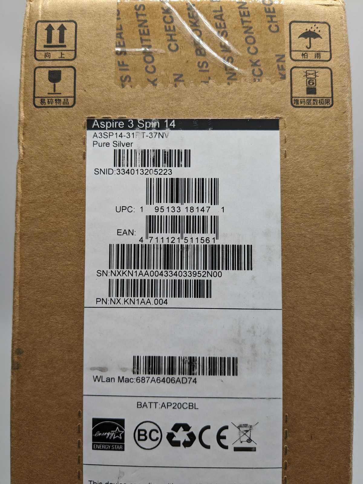 PURPLE TECHNADO Computers & Networking Business & Industrial Consumer Electronics Home & Garden Cell Phones Video Games & Consoles New Acer Aspire 3 Spin 14 A3SP14-31PT-37NV 14" i3-N305 8GB DDR5 128GB SSD Windows 11 Condition: New The brand-new, unused, unopened, undamaged item is in its original packaging (where packaging is applicable). Packaging should be the same as what is found in a retail store, unless the item is handmade or was packaged by the manufacturer in non-retail packaging, such as an unprinted box or plastic bag. See the seller's listing for full details Photos: Photos are of actual device. Reference pictures to see what accessories are included in this listing. All devices are factory reset. We are unable to provide the serial number at this time due to fraudulent warranty claims when published in a public forum. If you have any questions regarding the serial number or warranty information please send us an eBay message. CHECK OUT OUR EBAY STORES By Bristol Bay Luxury clothing, jewelry, and more CIT Electronics Great deals on second hand devices Purple Technado New and used high-end electronics Shipping Returns Get Help We ship within 1 business day. Example: if you pay for an item on Tuesday, we ship it out before the end of the day Wednesday. If you pay for an item on Friday through Sunday, we will ship it out before the end of the day Monday. These commitments are in accordance to eBay guidelines. Please contact us if you experience any issues upon delivery of your purchase. We are proud of the service and quality of the products we provide. If you have received an item this is defective or damaged, you can return your item within 30 days of ordering. Send us a message through eBay messages and we will be happy to help resolve any issue! We are a family run business that relies on eBay, so please be honest about why you are returning products. When people are dishonest it hurts our standing on eBay and makes it difficult to sell our quality items. Thank you. Please contact us if you experience any issues upon delivery of your purchase. As a full-service company, our goal is to provide 100% satisfaction to our customers, our long-term clients, our employees, and the communities in which we live. You can contact us through eBay messages.