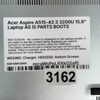 This is an INCOMPLETE Laptop being offered AS IS FOR PARTS OR REPAIR. It is a used item so please expect cosmetic wear like surface scratches and scuff marks. Main Issue: BAD SCREEN. BAD SCREEN - No content is displayed on the laptops screen. If you want to see the content being displayed you need to connect to an external monitor using the HDMI port. The battery seems to hold a charge but was not thoroughly tested. There is cosmetic wear all around the body of the laptop. See photos for more details. **The bottom panel, palmrest and screen lid have scratches. Screen lid has a couple of small dents. This parts laptop was tested briefly to boot to BIOS, but was not tested any further. It could need repairs or be missing additional parts Acer Aspire A515-43 15.6 in. Display, AMD Ryzen 3 3200U, and 4GB RAM DDR4 MISSING: Charger, HDD/SSD, Bottom Screws It will be packed carefully for shipping.