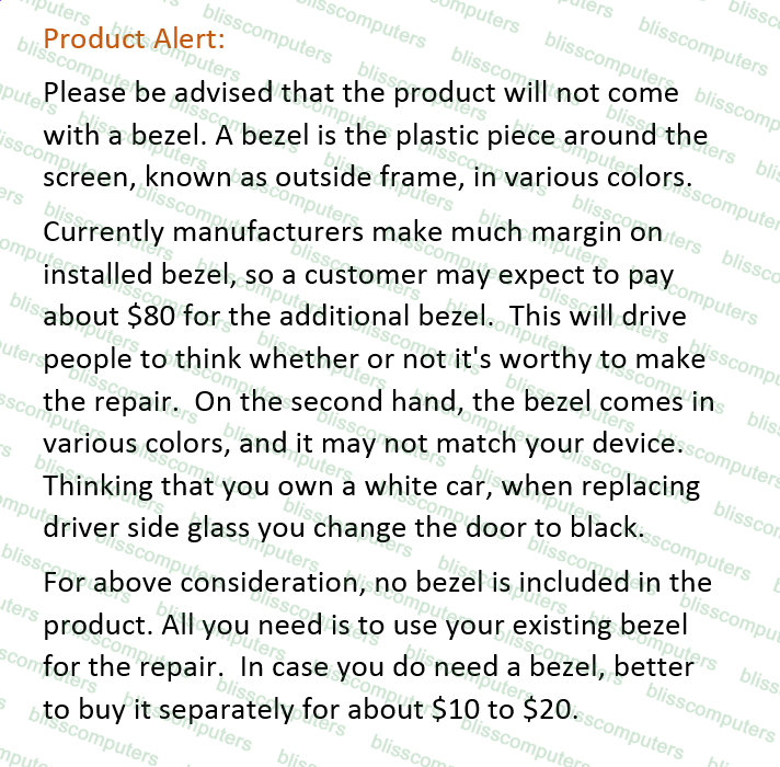 ACER ASPIRE R14 R3-431T-C289 TOUCH Assembly LED LCD Screen 14.0" Verification Note 1.We need your laptop serial number to match up screen and connection with Acer Web. 2.Plastic Bezel Casing is not included. Ghost Touch, Running Touch, No-Touch, and Inverted Touch are not screen related issues. Kindly check your digitizer board and cable since they are the most likely cause of any touch issue; please do not open a return claiming the touch did not work. If the machine has a weakened or fragile digitizer board, the replacement unit or assembly will not have proper touch or in some cases it may not have touch at all. Important Note Provide Laptop serial number if you are clueless about screen you need. Part number: 6M.MP5N7.001 B140XTN02.9 6M.MP5N7.001 LCD LED TOUCH PANEL W/ BEZEL 14.0 (TPK 14 WXGA GLARE B140XTN02.4) LCD Y 6M.MP5N7.003 LCD LED TOUCH PANEL W/ BEZEL 14.0 (TPK 14 WXGA GLARE B140XTN02.9) 6M.MSSN7.001 LCD LED TOUCH PANEL W/ BEZEL 14.0 (TPK 14 WXGA GLARE B140XTN02.4 0X0021) 6M.MSSN7.002 LCD LED TOUCH PANEL W/ BEZEL 14.0 TPK WXGA GLARE B140XTN02.9 0X1131 KL.14005.001 LCD LED 14.0 WXGA GLARE AUO B140XTN02.4 LF 220NIT 8MS 500:1 (EDP) Acer 6M.MP5N7.003 B140XTN02.9 B140XTN02.0 Acer 6M.MP5N7.001 ACER 6M.M3WN7.001 B140XTN02.4 Model number: Acer Aspire R14 R3-471 Acer Aspire R14 R3-471T Acer Aspire M5-481PT Acer Aspire M5-481 Acer Aspire M5-481T-6693 Acer r3-431T-C0G9 Acer Notebook Aspire R3-431T ; Acer Notebook Aspire R3-471T ; Acer Notebook Aspire R3-471TG Acer Aspire R3-471T-55F0 Title - ACER R3-431T-C289, R14 Important Notice About Your Order & Shipping You will receive only the item shown and paid for in the listing. Please note that we do not include free tape, adhesive, installation guides, or any other extras. As a business, we cannot provide free items, and we appreciate your understanding. Need Tape ? You can purchase it separately eBay Item 355286906103 Freight Forwarding Advisory We strongly advise against using freight forwarding companies, as they often mishandle packages—damaging boxes, altering packaging, or stacking heavy items on fragile ones. Since an extra party is involved in handling, FedEx, UPS, and USPS will not honor breakage claims , and unfortunately, we cannot assist with such damages either. If you must use a freight forwarder, we recommend: ✅ Asking them to double-box your package for extra protection. ✅ Purchasing insurance to cover any potential damage, as you’ll need to handle claims directly with the insurance provider. Our products contain fragile glass and are not designed for rough handling by freight forwarders. Please take precautions to protect your order. .