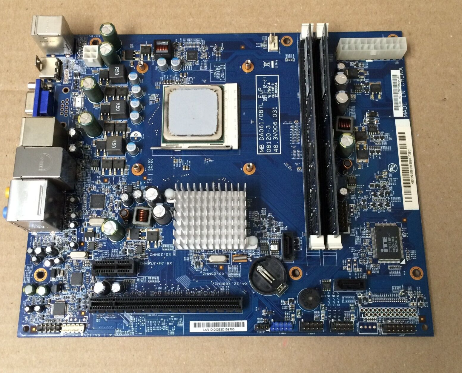 Acer MB DA061/087L EuP 08120-3 Motherboard Comes with AMD Athlon IIx2 CPU and 2x2GB RAM, New Cmos Battery Item pulled from working Desktop, fully tested, in excellent working condition Picturs show actual item in stock We offer a free 30-day return policy Disclaimer: Unless otherwise specified, most all our items are government and corporate surplus. We have a limited knowledge of their prior use. - All sales are final unless the item is not as described in the listing. About offers: - Please do not make any notes in comments otherwise our system will automatically decline the offers. - Please do not request additional parts or discounts or special favours via the offer message as it will be automatically declined. - If you have questions about items or shipping or otherwise, send us a message directly, not via the best offer message as it will be automatically declined. - We reserve the right to block buyers who sent an unacceptable offers. Payment: - You must pay for your item within 2 business days, otherwise item will be relisted Shipping: - All items are shipped FEDEX/USPS unless otherwise noted. Insurance is included in the shipping price. Higher priced items may require a signature. - We only ship to the Paypal verified address. No exceptions. Returns: - All return items must be the same things what I sent to you (Serial Number has been recorded) - All return items must be in the condition it was received. This means you must package the item up in the same way it was sent. - We reserve the right to refuse returns or withhold up to 50% of the purchase price as per eBay policy Feedback: Your satisfaction and positive feedback is very important to us. Please leave positive feedback with 5-STAR if you are satisfied with our items and services. If you have any problems with our items or services, please feel free to contact us first before you leave negative feedback. We will do our best to solve any problems and provide you with the best customer services