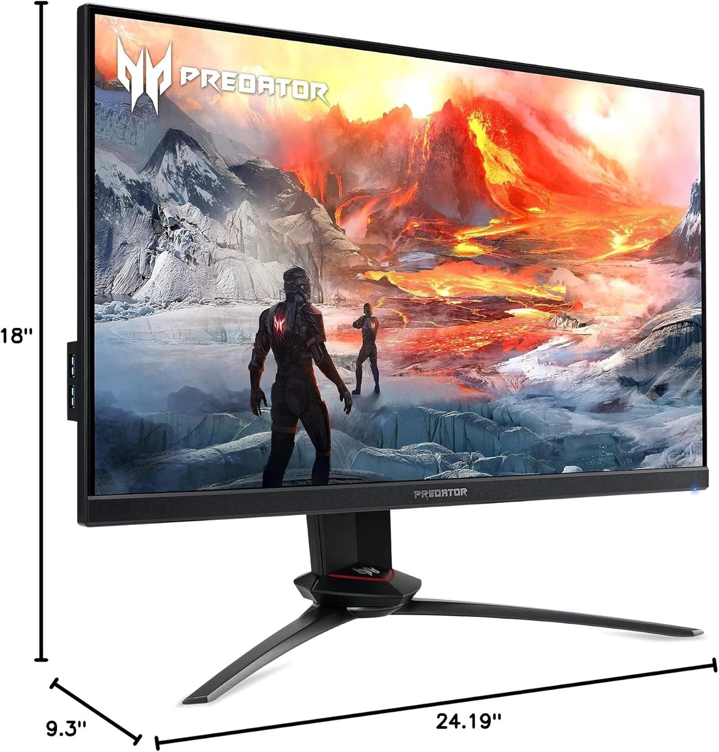 Brand acer Screen Size 27 Inches Resolution 4K UHD 2160p Aspect Ratio 16:9 Screen Surface Description Glossy About this item 27" UHD (3840 x 2160) Widescreen IPS Gaming Monitor | AMD FreeSync Premium Technology Refresh Rate: 160Hz | Response Time: 1ms (G to G) - Up to 0.5ms (G to G) | Brightness: Native 400nits, HDR600 Mode: Peak 600nits | 2 speakers, 2 watts per speaker High Brightness and Contrast with VESA Certified DisplayHDR600 | Color Saturation: DCI-P3 95% | Color Accuracy: No color difference with Delta E<1 TUV and Eyesafe Certified | Low Blue Light ErgoStand: Ergonomic Tilt: -5° to 25° | Height Adjustment Range: 3.94" | Swivel: +/- 20° | Pivot: +/- 90° USB Type-C: 1 x USB 3.1 (Type-C) port (Gen 1 up to 5 Gbps) supporting data, power (65W) and DisplayPort over USB-C | Video Ports: 1 x Display Port 1.4, 2 x HDMI 2.1 (Supports PS5 and XBOX: 4K UHD@120Hz) | USB Ports: 4 x USB 3.0 | HDMI Cable, Display Port Cable, USB Type-C Cable and USB Cable Included