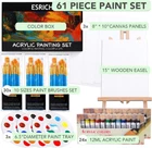 About this item 【1 Wooden Easel】:One 15" wooden easel has a catch string and adjustable legs.it can keep the stability of the canvas panels on it.Easel can be folded, light and easy to carry. It can accommodate canvas art up to 14" high. 【3 Canvas Panels】:Our canvas is easy to color,the whole canvas was firmly nailed to the board.the size is 8”*10”.Each Canvas Panels is individually packaged, clean and tidy to meet your creative needs. 【3 Packs of 10 Sizes Art Brushes】: 10 sizes versatile paintbrushes set with a variety of shapes make Mixing color more easier, perfect for artists, students, teens, kids and painters of all levels. Wonderful gift idea for your friends and families that enjoy painting! 【3 PCS Paint Plates】:Plastic paint palettes with a diameter of 6.5 inches are light, convenient and strong, can be use for a long time, easy to clean,with enough quantity for you to mix colors and solid colors. 【2 Packs of 12ml Acrylic Paint in 12 Colors】:The 2 packs are bright in color,features smooth and high in coloring.They are suitable on most painting surfaces including Canvas, Paper, Glass, Clay, Wood, Rocks, Fabric, Leather and Ceramics.