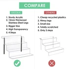 Return Policy Fast Delivery Trusted seller Acrylic Riser Shelf 4 Tier Clear Display Stand for Collectibles Pop Figures, Cupcakes, Perfumes, Display Risers for Decorating & Organizing - 11.8 x 10.8 x 6.5 in (Large, 2 Pack) Product Description 【STURDY & SOLID】Our acrylic display riser is equipped with 4 non-slip rubber pads and 2 stainless steel legs, the display stand can withstand weights up to 22LBS. The designed top backrest and each 87-90° angled step prevent and protect our items from falling. 【EASY TO INSTALL AND CARRY】This clear display stand can be removed and installed at any time by simply fixing the thumbscrew to the legs without the need for a screwdriver. 【MULTIFUNCTIONAL】Stainless steel metal legs can be adjusted to accommodate uneven surface heights. The product size is 11.8 x 10.8 x 6.5 in, 4-step stand shelf which is fitting for Pops Figures, figurines, cupcakes, cosmetics, perfumes, kitchen supplies, etc. 【GOOD CONDITION PACKAGE】This 4 steps display riser in a good quality box, t are protective bags on both sides of the shelf to prevent scratching. With a cleaning fabric to keep the product transparent when using. 【SATISFACTORY CUSTOMER SERVICE】This display rack only needs 2 minutes to assemble. If it arrives broken or missing pieces, please message us and we will provide you with a satisfactory solution. Shipping Returns Payment Shipping Shipping is FREE to all addresses other than APO/PO boxes in the lower 48 states. All our stock ships from US-based warehouses. Shipped via USPS or UPS (depending on location and package weight) Unless stated otherwise, all orders will ship within 24-72 hours of your payment being processed. Check our feedback to see the great reviews of FAST shipping we offer. Returns Seller does not accept returns Payment We currently accept payment via eBay managed payments only. Once payment is cleared, we will dispatch your shipment within 1-3 business days. Please refer to the "Shipping" tab for more information regarding shipping speed to your destination.