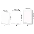 Features: and high This acrylic sign holders is for showcasing important information with its easy storage. Our acrylic sign holders adopts a vertical double-sided and both sides can display pictures and posters, Suitable for retailers, exhibitors, and restaurant operators who need a convenient way to present information to their customer. T-shape sign holders is suitable for various setting such as retail counters, supermarket shelves, exhibition venues, and restaurant tables where product and promotional information demands to be displayed. Take of this portable display stand to effectively communicate with your customer and improve your business presentation. Specifications: Acrylic A Size: about 15x21cm/5.91x8.27'' B Size: about 21x29.7cm/8.27x11.69'' C Size: about 21.7x28cm/8.54x11.02'' Type: 3 Kind Optional Package Includes: 1x Acrylic Sign Holders note: Please allow 1-3cm errors due to manual measurement. Due to difference betweeen different monitors,the picture may not reflect the actual color of the item.