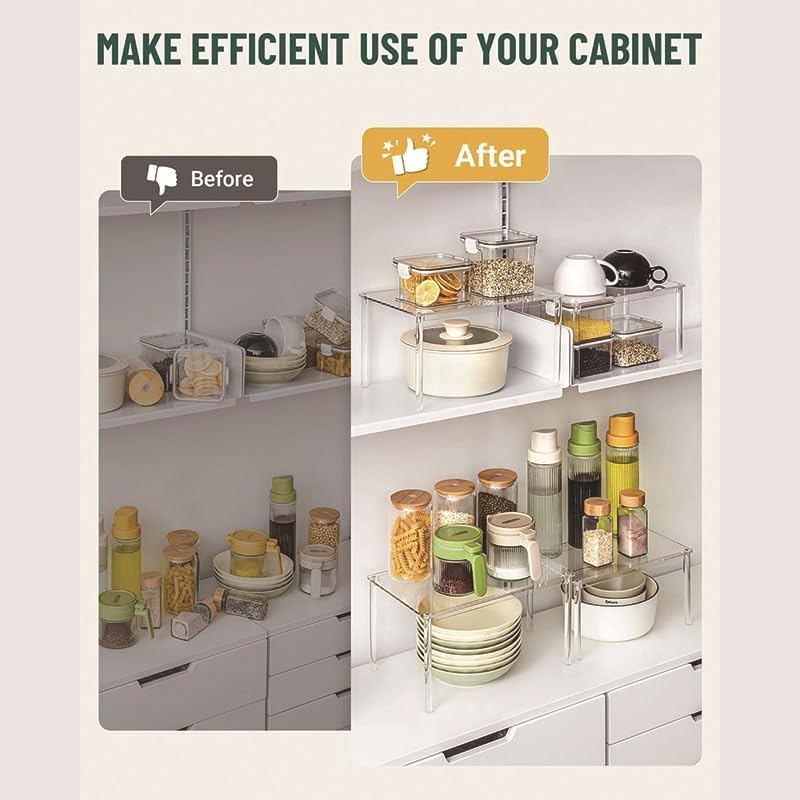 , Acrylic Cabinet Organizer Set of 4 Spice Cabinet Shelf Space Saving Kitchen Cabinet Organizer Multi Functional Storage Rack Essential Items for the House (4) Maximizing Space Utilization:These cabinet organizer are essential cabinet shelf organizers for every household! It can be used as a countertop shelf to hold everything you want, such as seasonings, cups, bowls, plates, tableware, cosmetics, skincare products, etc. It is very sturdy and durable, well-designed, and fully utilizes vertical space to continue organizing and storing these items, making your kitchen storage space cleaner and more tidy with this space saving solution. Versatile Shelf Organizer:This shelf organizers can be used in multiple scenarios, not only as a shelf and storage room in the kitchen! They can also be placed on cabinets, counters, bathrooms, rooms, offices and refrigerators to create more layers and stacking options for boxed grains, spice bottles, cans, cups, jelly cans, toiletries, nail polish bottles and cosmetics. Keep items neat and orderly, and create a tidy space. Make these excellent and clean desktop shelf organizers your home storage assistants! Durable Materials and Clean Look:This spice rack is made of high-quality acrylic, which is durable and stable. Shelf organizer has a horizontal structural support rod and a 4mm thick sturdy support that can safely support things on the countertop and can support up to 11 pounds. And equipped with anti slip adhesive points for stable anti slip performance. These transparent shelves look clean and tidy, and make it easier to find what you're looking for. Easy to Assemble: This cabinet shelf is very easy to assemble, just tighten the screws on the support legs, and you can assemble these spice shelf in minutes. It has two sizes of support legs, the short one for small sizes and the long one for large sizes. This kitchen countertop organizer is easy to clean, and these transparent shelves can resist oil stains and sticky residues, which can be wiped clean with a damp cloth in just a few seconds. The Best Gift:This set of 4 cabinet organizers comes in two different sizes: two small shelves measuring 10.39 * 6.38 * 5.39 inches; Two large shelves measuring 11.69 * 7.68 * 6.29 inches. Please note that the protective film should be removed from both supporting surfaces during use. It is an excellent decoration for any kitchen counter or cabinet, and its stylish design is an excellent gift choice for various occasions such as housewarming and holidays! kitchen shelf organizer kitchen counter shelf cupboard organizers and storage pantry organizers and storage shelf organizers kitchen countertop organizer kitchen organization spice organizer spice rack organizer countertop shelf Item model number KT-480 Part Number KT-480 Room Type Kitchen Is Customizable No Number of Shelves 4 Mounting Type Countertop Assembly Required Yes Item Package Quantity 4 Product Dimensions 7.68"D x 11.69"W x 6.29"H Material Acrylic Style Modern Item Weight 3.03 pounds Batteries Included? No Batteries Required? No Special Features Detachable Included Components Add-on Units Special Feature Detachable 11.69 "h x 7.68 "h x 6.29 "h. Weight: 3.03 lb Shipping from the USA All of our products are shipped from the USA, ensuring quick delivery to your destination. Payment We offer the following payment methods: PayPal, credit card, bank transfer, and eBay's secure payment system. Free Shipping & Free Returns Shipping within the USA is FREE. Additionally, any return is absolutely free for you. Risk-Free Purchase You have the option to return an item within 30 days without any justification. We cover the return shipping costs! Fast Shipping We ship immediately upon receipt of payment. Generally, the package is delivered within 2-3 days in the USA. If it takes longer, we will contact you. Quality and Costs Made in Europe, USA, China No customs fees or additional charges Total satisfaction guarantee Invoice with declared VAT available upon request in .pdf format Feedback Your feedback is very important to us. After you pay for your purchase, you will automatically receive positive feedback from us.