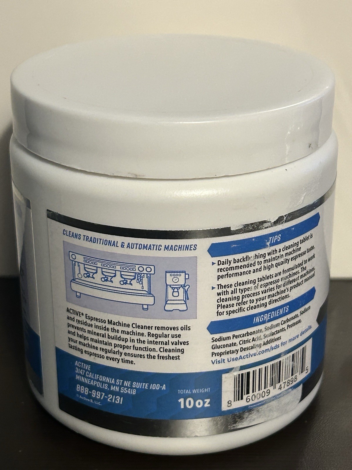 The Active Espresso Machine Cleaning Tablets are specially designed for removing coffee oil build-up in espresso machines. With 120 fragrance-free, unscented tablets in a pack, these cleaning tablets are formulated as a degreaser and detergent to effectively clean and descale the espresso machine system. Suitable for use with espresso machines, these tablets are convenient and easy to use, providing a thorough cleaning solution for maintaining the machine's optimal performance. Made by Active, a trusted brand in coffee and espresso parts, these cleaning tablets are an essential item for any coffee lover's kitchen.
