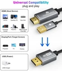 Active HDMI to DisplayPort Cable 6FT (4K60Hz), Uni-Directional HDMI Source to Display Port Monitor Cable, Male to DP Female Compatible PC, Graphics Card, Laptops, PS5 Product Details Package Dimensions : 7.91 x 6.34 x 0.83 inches; 5.29 ounces Item model number : HDMI to DisplayPort Cable Manufacturer : THANDBLE Brand: THANDBLE Connector Type: DisplayPort, HDMI Cable Type: HDMI to DisplayPort cable Compatible Devices: PC, Desktop, Graphics Card, Laptop,Ultrabook,Raspberry Pi, MacBook Pro, Mac Mini, PS 5/4/3, Xbox One/360, Chromebook, TV Box PC, Desktop, Graphics Card, Laptop,Ultrabook,Raspberry Pi, MacBook Pro, Mac Mini, PS 5/4/3, Xbox One/360, Chromebook, TV BoxPC, Desktop, Graphics Card, Laptop,Ultrabook,Raspberry Pi, MacBook Pro, Mac Mini, PS 5/4/3, Xbox One/360, Chromebook, TV Box See more Special Feature: Braided Crystal Clear 4K High Resolution: THANDBLE HDMI to DP cable adapter is a necessity for your home entertainment or out of office, amazing 4K@60Hz UHD resolution can bring you extraordinary visual clarity, and backward compatible with 4K@30Hz, 2K@60Hz,1080P@120Hz/1080P@60Hz, 1080i, 720P resolution.(Note :It is not a bi-directional converter, it can only transfer signals from HDMI to DisplayPort in one direction. not supported 1440P@144Hz and function DDC/CI) Wide Compatibility: HDMI to Display Port cable supports everything from connecting a video source from the HDMI port to the DP port for display, compatible with PCs, desktops, graphics cards, laptops, AMD, NVIDIA, Raspberry Pi, MacBook Pro, ps5/4/3, Xbox One/360 and other devices with HDMI output port ( Note: Switch and Xbox series only support 1080P@60Hz resolution display) The Best Material Structure Design: HDMI to DisplayPort cable adopts multi-layer signal shielding structure, effectively shielding electromagnetic interference, transmission is smoother, one-piece aluminum alloy shell can give full play to the advantages of heat dissipation, so that you no longer need to worry about heat-induced problems, and to reduce signal transmission loss to achieve lossless transmission, gold-plated ports are able to transmit more stable signals. Plug and Play, Safe and Simple: Easy to install, plug and play, plug in the USB power supply that comes with the cable to power the built-in IC chip before use to achieve the most perfect display effect, no need to install any drivers and software. Easily transfer perfect audio and video signals from HDMI video source device to DP display device at high speed.(Note: Please make sure the HDMI source device and DP display device support 4K@60Hz resolution)