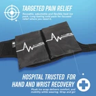 Professional Design for Comfort – Created by PT experts, our wrist ice pack wrap provides a compressed, customizable fit with soft ice or heat application and maximum coverage for optimal wrist support. All-in-One Hot & Cold Wrap – Delivers versatile therapeutic wrist support for carpal health, inflammation and sprains. Soft gel packs remain flexible when frozen for comfortable,contouring coverage, while adjustable straps allow effective cooling or warming of wrist and hand without prohibiting hand use. Long-Lasting Cold Pack – Two included soft gel packs provide superior temperature retention and stay in place under compression. Ideal for wrist cooling or warming as needed, offering reliable support during activities or after extended work sessions. Universal Fit for Left & Right Use – Ergonomic ice wrap fits both left and right wrists, providing full top-to-bottom coverage. Use one or both soft packs to adjust the fit and compression as needed. For active recovery, typing, overuse injury and wrist stability. Comfortable & Flexible Support – Designed for mobility, our wrap reduces wrist discomfort and stays secure without limiting movement or use of hands. Compression design allows deep cold or heat application, doubling as an ergonomic typing glove for extended wear.