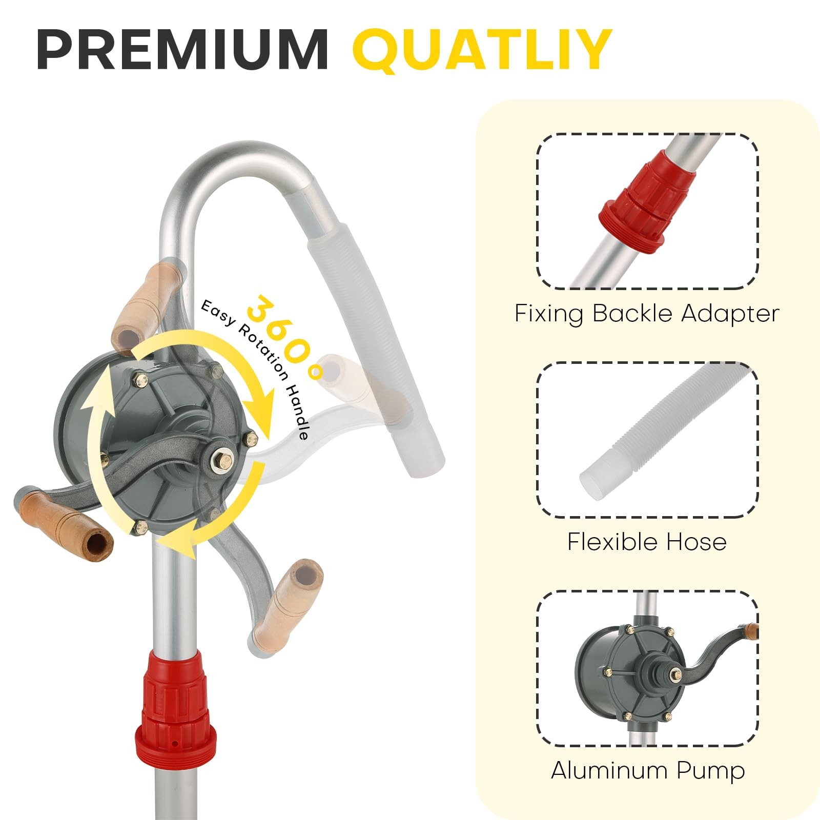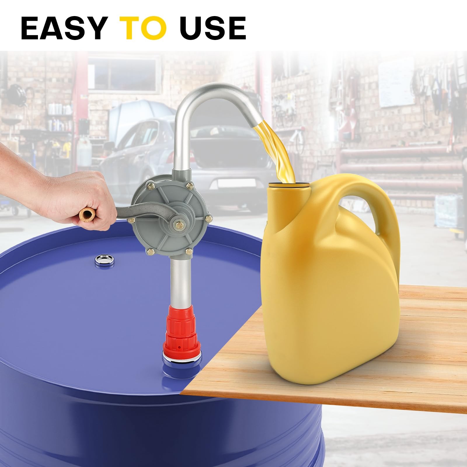 Acymner Aluminum Rotary Hand Barrel Pump | 5 to 55 Gallon Drum Red, Blue Description Features: Durable Aluminum Construction: Crafted from high-quality aluminum alloy, our 55 gallon drum pump is built to last. It's corrosion-resistant, lightweight, and designed for long-term use. Carry it with ease thanks to its sturdy construction. Versatile Drum Compatibility: Our hand pump fits a wide range of gallon drums, including 5, 15, 30, and 55 gallons. The barrel pump comes with adjustable aluminum pipes, making it suitable for various drum depths. The red-threaded connection ensures a secure fit. Effortless Manual Operation: Experience smooth and hassle-free pumping with our ergonomic hand-crank design. No electricity needed – pump with ease at your convenience, whether at home, in your business, or on the farm. This 25mm outlet manual drum pump can reach a maximum of 70 rev/min. Flow(L/min):16 Effective Seal: Our barrel pump 55 gallon features a three-piece segmented suction tube, allowing you to effortlessly adjust the tube's length to match your specific needs. This design not only makes storage and transport convenient but also ensures a robust connection with its threaded suction tube, effectively preventing any oil leakage. Wide Applications: The drum pump finds extensive applications in handling diesel and kerosene but should be avoided for use with corrosive liquids, chemical substances, gasoline, water, and similar materials. Product Details: Handling We will ship all orders within 3 business day of payment. Delivery We Do Not Ship Outside of the Continental US. Return Policy All items qualify for returns within 30 days of receipt. Buyer is responsible for return shipping on any item that is not damaged. Feedback We take our reputation seriously, we buy and sell online, so we understand the value of trust. If you are unsatisfied with your order, please contact us and we will work with you to resolve it to your satisfaction.