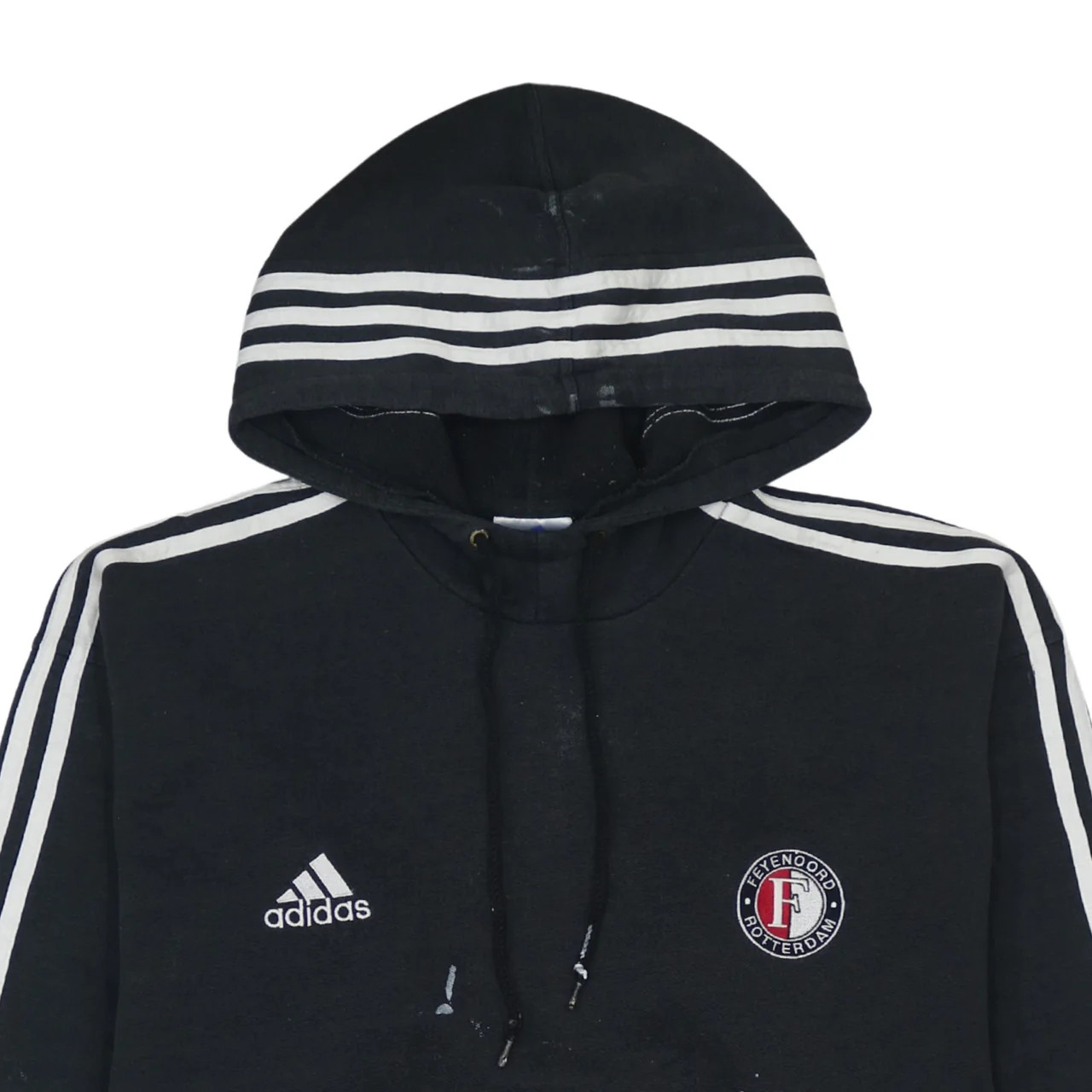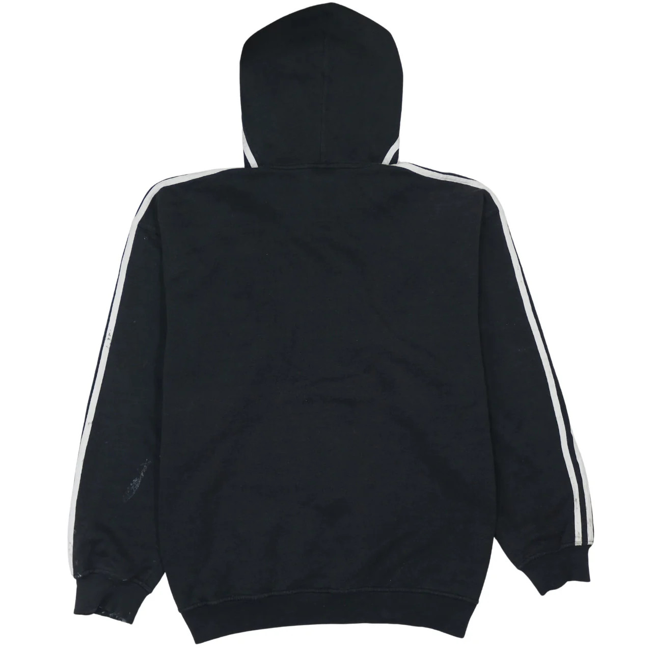 Adidas Black Hoodie Large Brand: Adidas Type: Hoodie Design: Striped Sleeve Pullover Colour: Black Material: Cotton Size on label: Men's Large Recommended size: True to size. Quality: Mark on front Chest (pit to pit): 28" Length (collar to bottom): 30" Arm (inside pit to cuff): 27" Ref-LM916510-10522-08 VCUK:10522-08