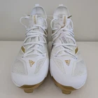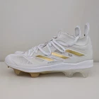 These Adidas Baseball Cleats are the perfect addition to any baseball player's gear. The Adizero Afterburner NWV TPU design provides maximum support and comfort while playing. The cleats are made with high-quality materials to ensure durability and long-lasting use, the colorway is cloud white and gold metallic. The cleats are available in a men's size 12 with medium width, and are suitable for use in various baseball and softball leagues. The Adidas brand is known for producing high-quality sports gear, and these cleats are no exception. They are made in Vietnam and are sure to provide the support and comfort needed for success on the field.
