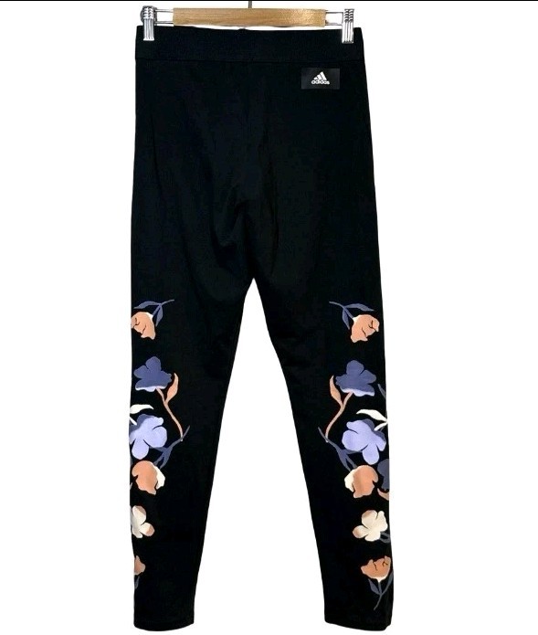 The Adidas Black Floral GFX Multi Sport Tights are versatile athletic pants designed for women in size small. These stretchy pants feature a pull-on closure and a comfortable elastic waistband. Made from a blend of polyester, spandex, and cotton, these tights offer ease of care with machine washability. The black floral pattern adds a touch of style, while the skinny leg style and ankle length make them suitable for various athletic activities such as yoga, running, and pilates. Perfect for all seasons, these breathable and stretchy pants provide comfort and flexibility for your active lifestyle.