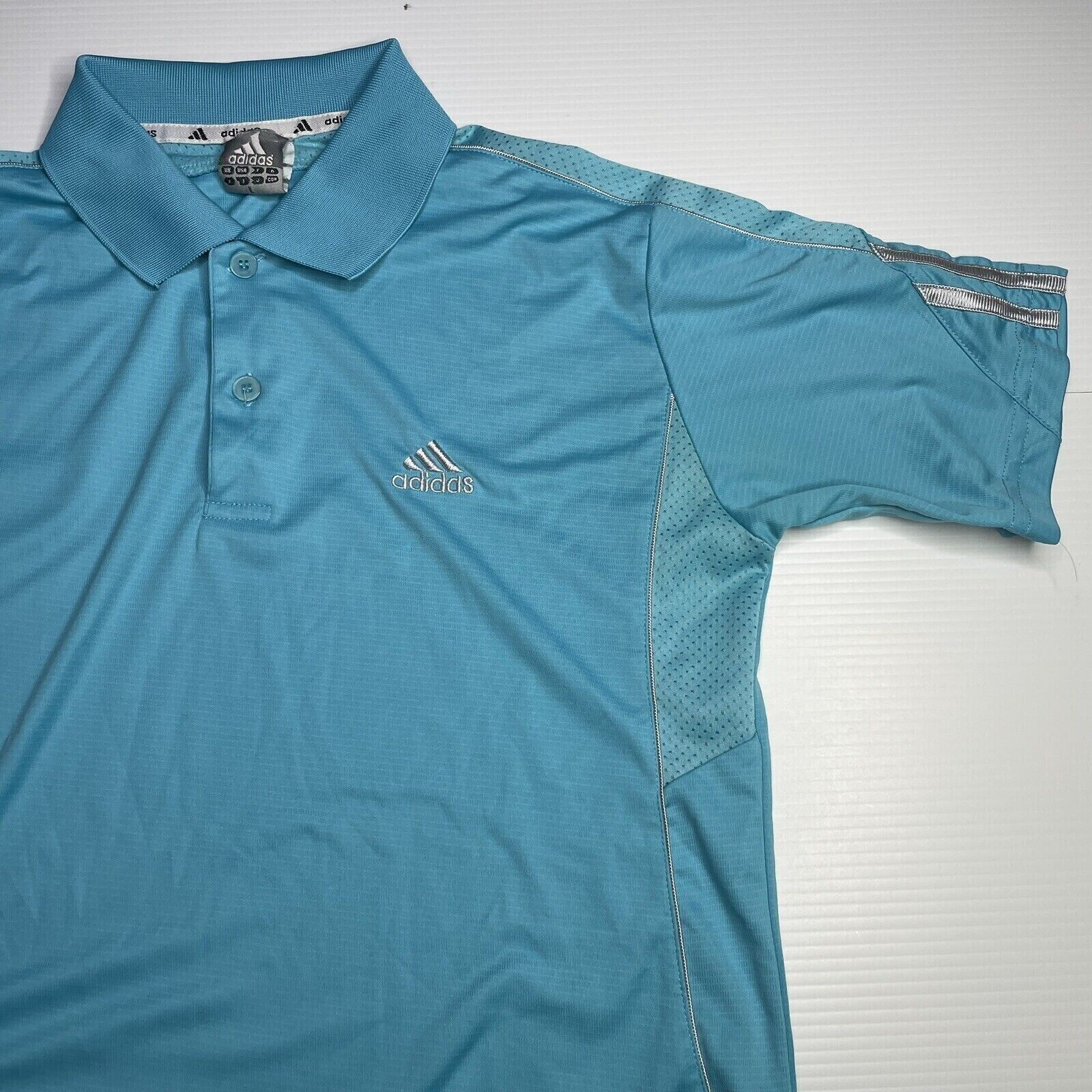 Welcome to our Ebay Store~! Item: Adidas Blue Polo Shirt Mens Size L Casual Golf Style Fashion Summer Fit Condition: Pre-Owned Very Good Condition Measurements LAYING FLAT: Armpit to Armpit: 48 cm Shoulder to Shoulder:42 cm Length: 65 cm == Shipping: Shipped Fast and Tracked with Australia Post Standard Parcel 2-3 Day Handling Time Maximum
