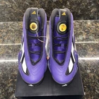 The Adidas Crazy 97 EQT sneakers in size 10.5 feature a striking Regal Purple colorway, paying tribute to Kobe Bryant's iconic Slam Dunk Contest appearance. This model, also known as the "Dunk Contest" edition, showcases a combination of leather upper material and the signature adidas Crazy design. With a unique style code GY4520, these athletic sneakers are part of the adidas Crazy product line, released in 2022. A must-have for fans of Kobe Bryant and sneaker enthusiasts looking for a standout addition to their collection.