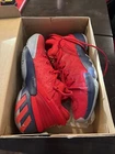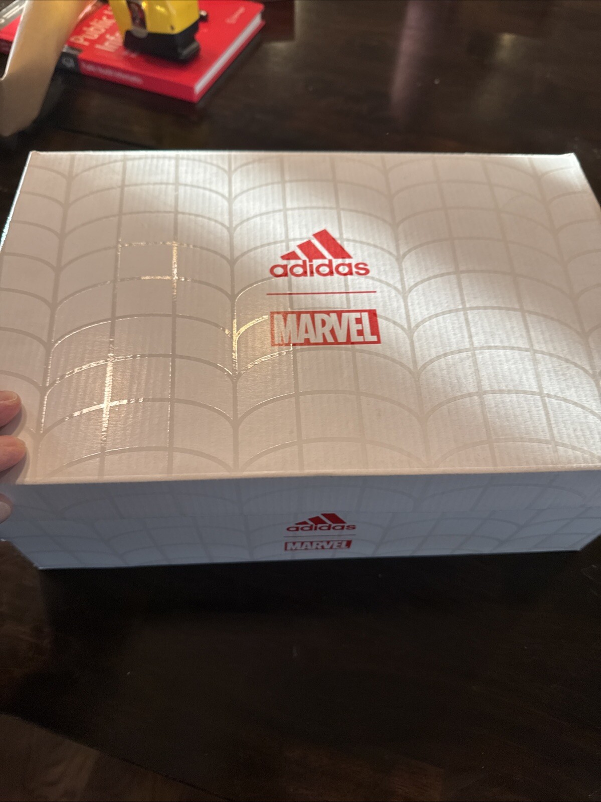 This is a pair of Adidas D.O.N. Issue basketball shoes in collaboration with Marvel's Spider-Man. They are red in color with a Spider-Man theme, featuring a lace-up closure and standard shoe width. The shoes are a men's size 8 (UK 7.5, EU 41 1/3) and are part of the Adidas D.O.N. product line. The outsole material is rubber, suitable for basketball performance. The shoes are new with the box. Purchased these for my son but he never wore them outside. We recently found them in his closet. Looking for a new home. Really nice looking and I wish they fit me!!