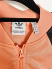 ADIDAS Equipment Coral Peach Black Stripe Superstar Zip Track Jacket Size: XS = 0/2 Color: Coral and Black Bust: 38" Length: 24" Bright and Rare Superstar Jacket by Adidas Equipment Collarless Long Sleeve with stretch cuffs Full Zip Side Zip Pockets 100% Polyester **EXCELLENT CONDITION, comes from a pet/smoke free environment