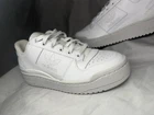 The Adidas Forum Women 8.5 Triple White sneaker is a stylish and comfortable athletic shoe designed for women. Featuring a clean and crisp white color with a leather upper, this sneaker is perfect for those looking for a cute and contemporary footwear option. The adidas Forum model, released in 2021, offers a comfortable fit with its Cloud White/Cloud White/Core Black color combination and distinctive style code FY9042. Perfect for adding a touch of elegance to any outfit, these sneakers are a must-have for sneaker enthusiasts.