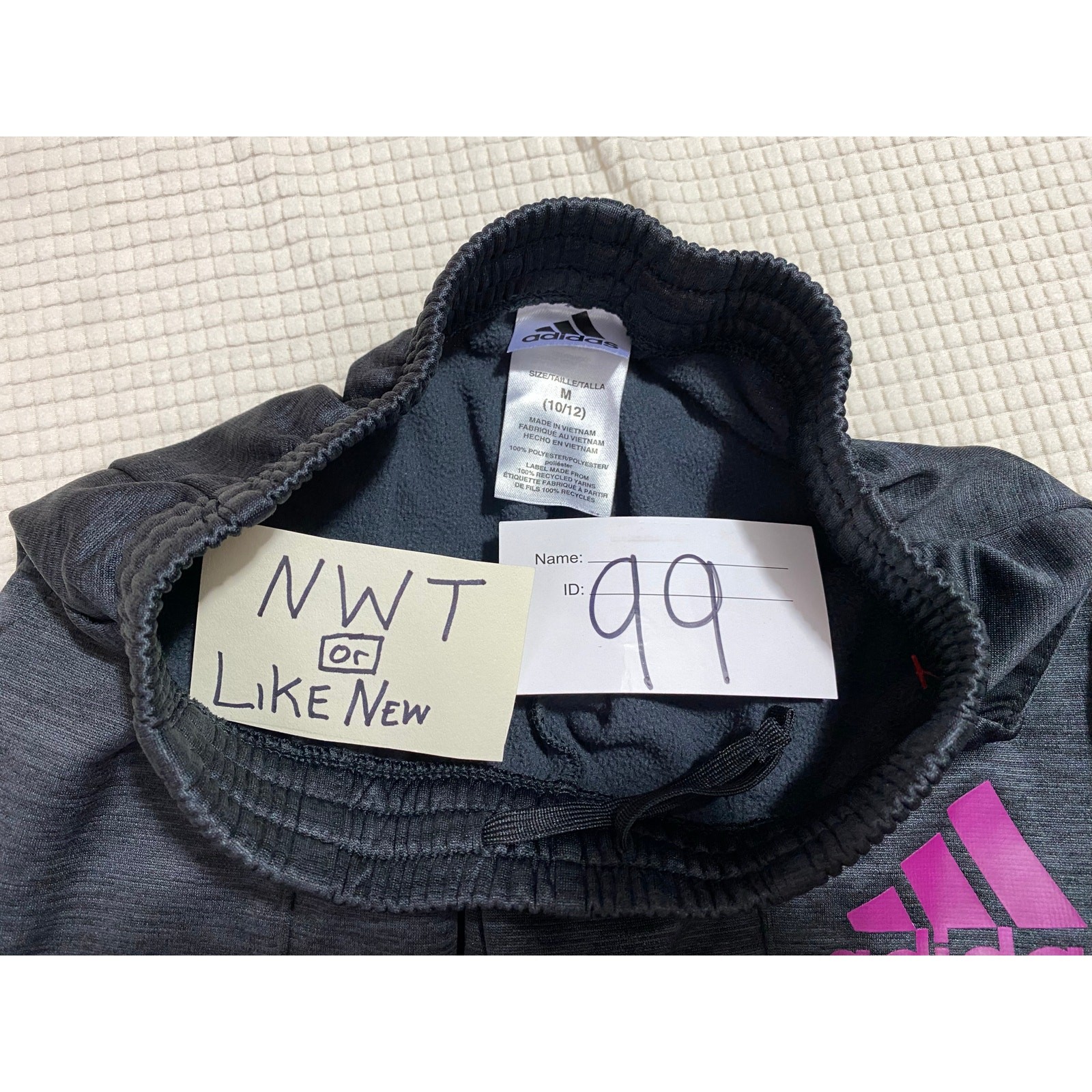 Adidas Girls Gray & Purple Melange Fleece Joggers Size Medium (10–12) SIZE MEDIUM 10–12 — SEE PHOTOS FOR MEASUREMENTS AND CONDITION — If the shipping cost seems high send me a message and I can adjust Please see the pictures for details. I try to highlight any known imperfections with close‑up images. I focus on buying new or like‑new condition. Girls’ Adidas fleece joggers in a gray and purple melange colorway, Size Medium (10–12). Soft, cozy fleece with an athletic fit—perfect for school, lounging, sports, or everyday comfort. Features elastic waist, tapered legs, and classic Adidas styling. Hashtags: #adidasgirls #joggers #girlsmedium #fleecepants #melangejoggers #athleticwear #kidsclothing #adidasapparel #comfortablewear