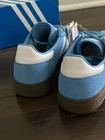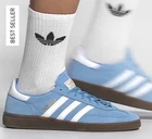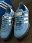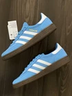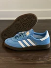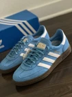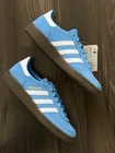BRAND NEW with box - 100% AUTHENTIC. The Adidas Handball Spezial GS in light blue and cloud white is a stylish sneaker perfect for various occasions such as activewear, casual outings, and workwear. This lace-up shoe features a velvet fabric type with a leather upper material and a rubber outsole, providing comfort and durability. Ideal for all seasons, this athletic shoe is part of the adidas Handball product line, known for its classic style and performance in activities like gym training, walking, and running. Perfect for young women who appreciate quality and style in footwear. Ship Fast! Thanks for looking!
