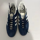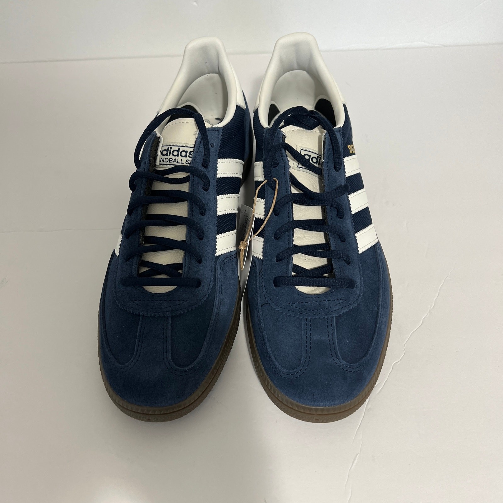 Get ready to elevate your footwear game with these brand new Adidas Handball Spezial sneakers! These stylish shoes feature a classic design with a navy blue suede upper and a gum rubber sole, perfect for both casual wear and athletic activities. Here are some key features: - Brand: Adidas - Model: Handball Spezial - Color: Navy Blue / Gum - Material: Suede Leather - Size: 11 - Condition: New with box Don't miss out on the opportunity to own these iconic sneakers. They are sure to become a staple in your wardrobe. Grab them now and step out in style! box 1275