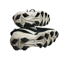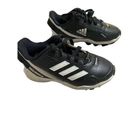 Kids' baseball cleats from Adidas featuring the Icon design. Black with silver stripes, these cleats offer excellent traction with their specialized sole pattern. Perfect for youth baseball games and practice. Features IronSkin toe protection and durable construction. Ideal for both beginners and experienced young players. US Size: 10 Type: Cleats Gender: Unisex Keywords: kids baseball cleats, adidas icon, youth sports, athletic shoes, baseball gear, sports footwear, black cleats, kids sports, baseball equipment, youth cleats
