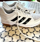Adidas Ligra 7 women’s indoor court shoes (model AFZ4660). Designed for volleyball, pickleball, badminton, and other fast-paced indoor sports, they deliver lightweight support, breathable comfort, and excellent grip with a classic white/black gum sole design. Brand / Model: Adidas Ligra 7 (AFZ4660) Size: Women’s US 8 / UK 6.5 / EU 40 / JP 250 Colorway: White upper, black Three-Stripes, gum outsole Upper: Breathable mesh with synthetic overlays for durability and stability Midsole: EVA cushioning for lasting comfort during play Outsole: Non-marking gum rubber with multi-directional tread for reliable traction indoors Made in: Vietnam Condition: Pre-owned with cosmetic wear. Small fabric wear spots on the inner ankle lining of both shoes and wear at the top lace area (see photos). Uppers and soles are structurally sound with good tread remaining. Perfect for: Volleyball, pickleball, badminton, squash, gym training, or any indoor activity requiring quick movements and solid grip.